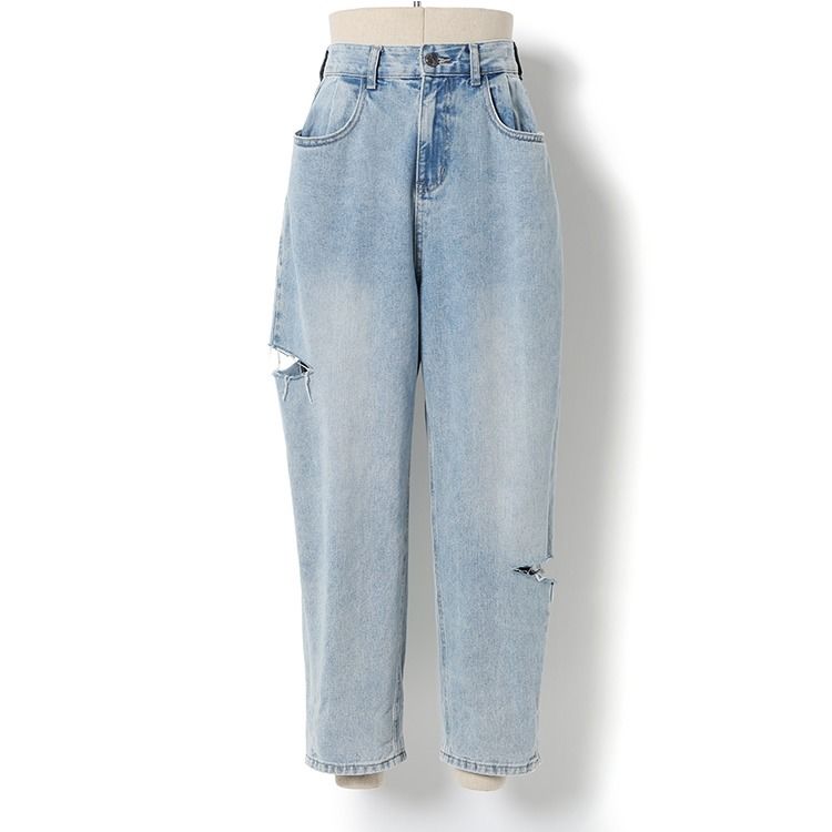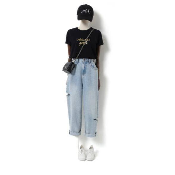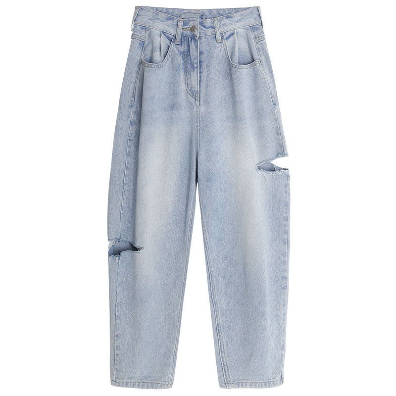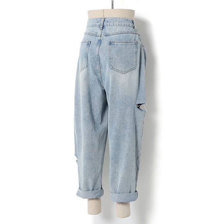 高腰破洞牛仔裤女夏季直筒bf风宽松春装新款显瘦垂感阔腿九分裤潮