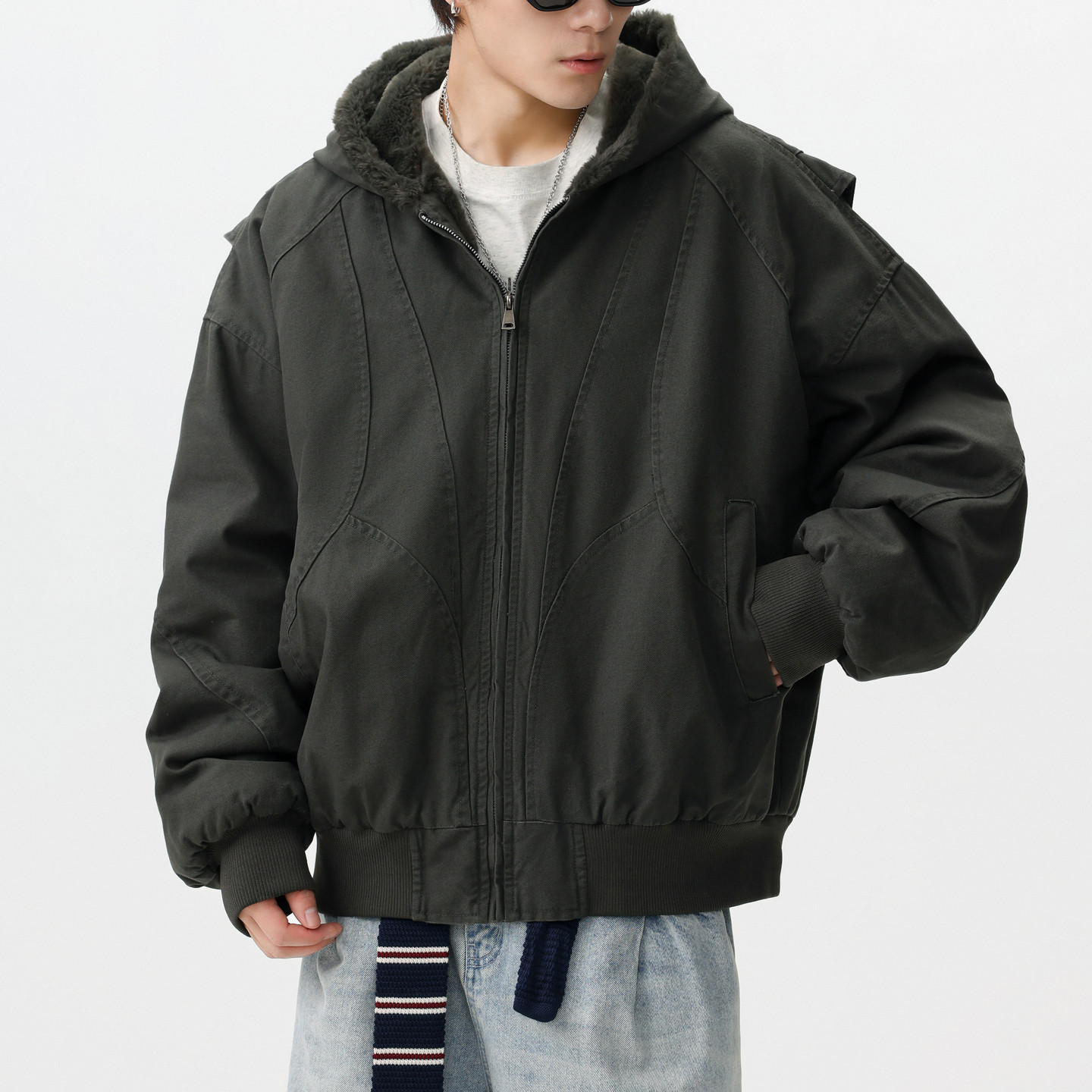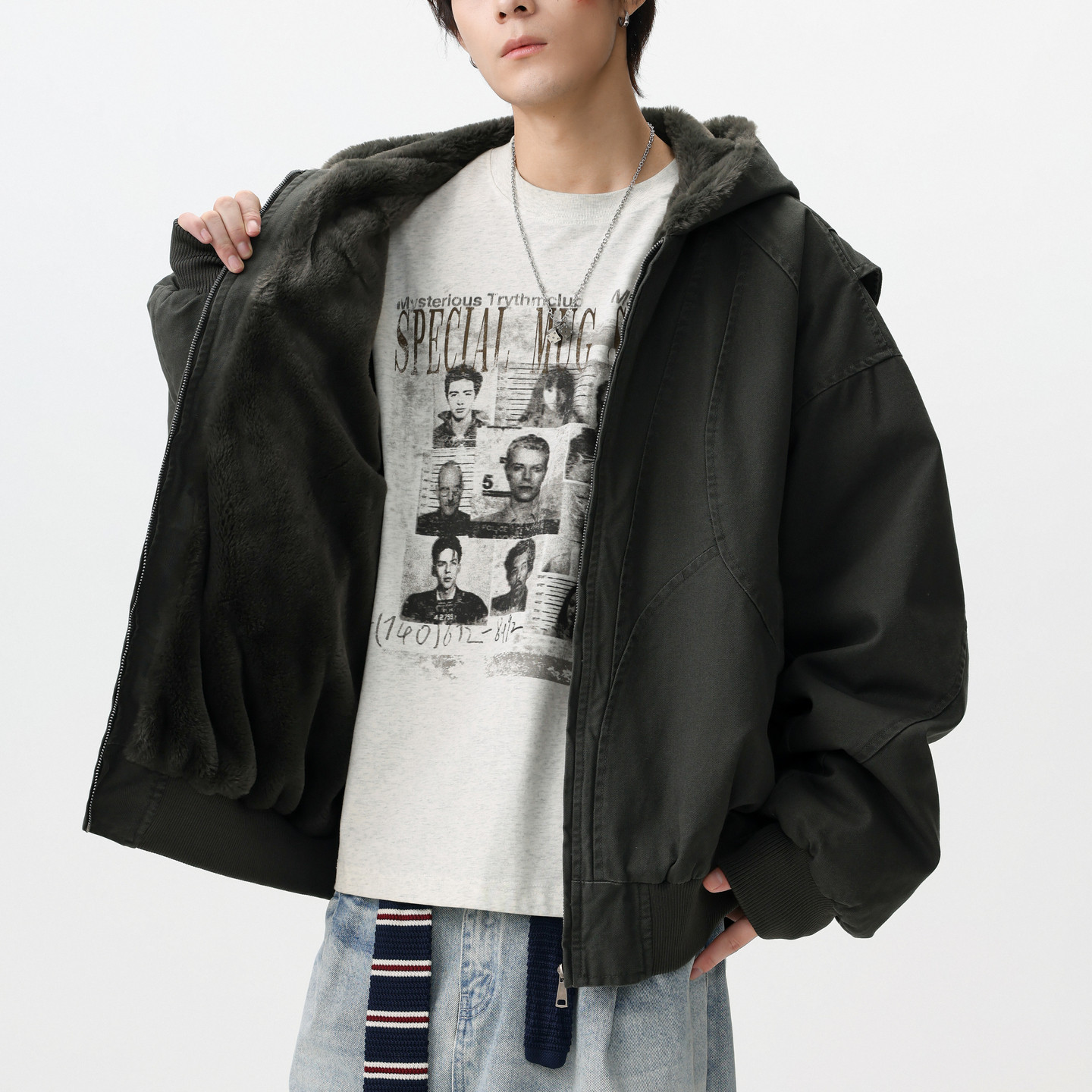 男士加绒加厚外套男款连帽2025新款冬季军绿色上衣工装夹克男装冬