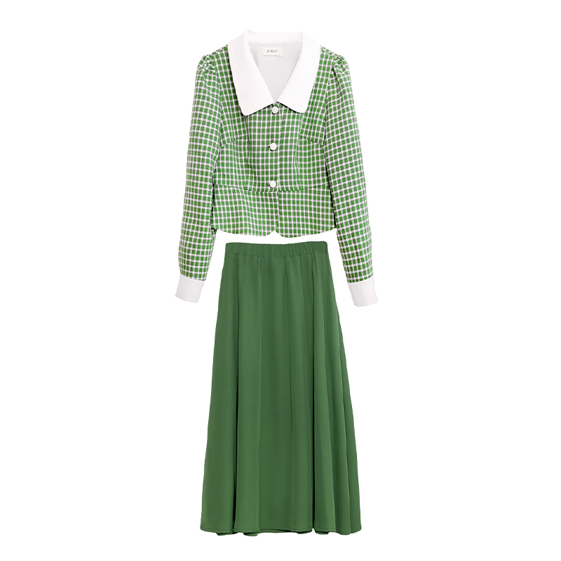 浪漫格调~港风文艺复古秋季女装穿搭裙装日常通勤格子套装两件套