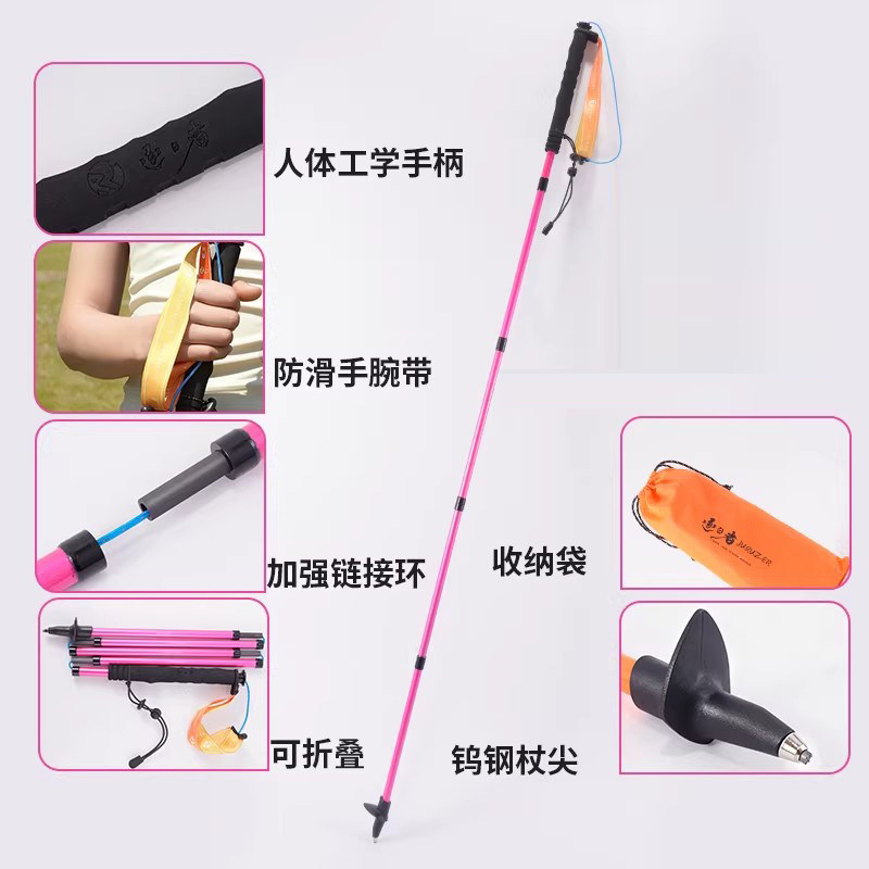 逐日者碳纤维碳素登山杖专业户外爬山徒步防滑轻便伸缩折叠手杖