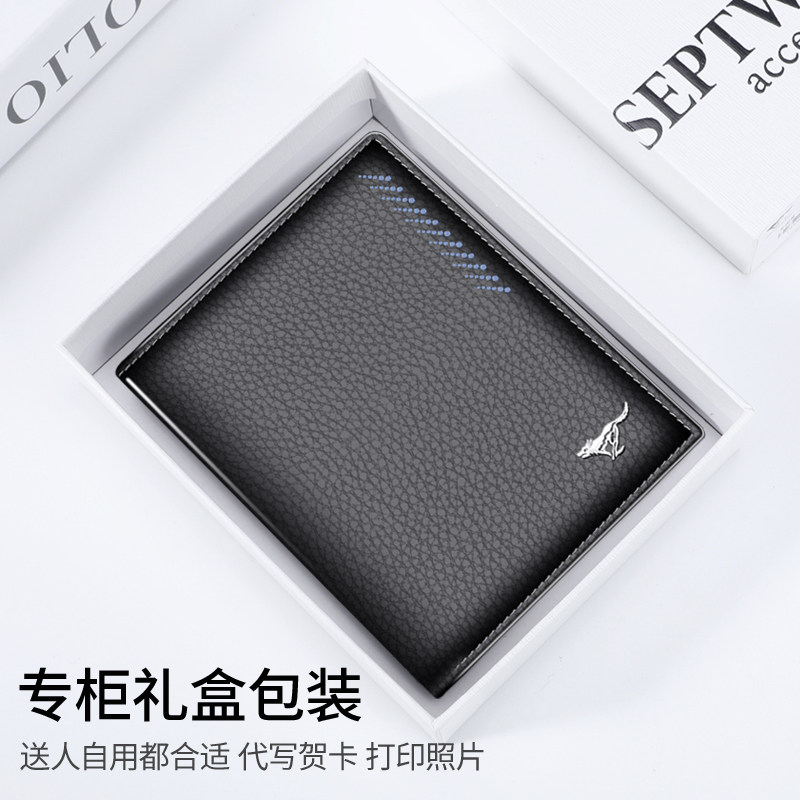 七匹狼钱包男新款真皮软牛皮竖款
