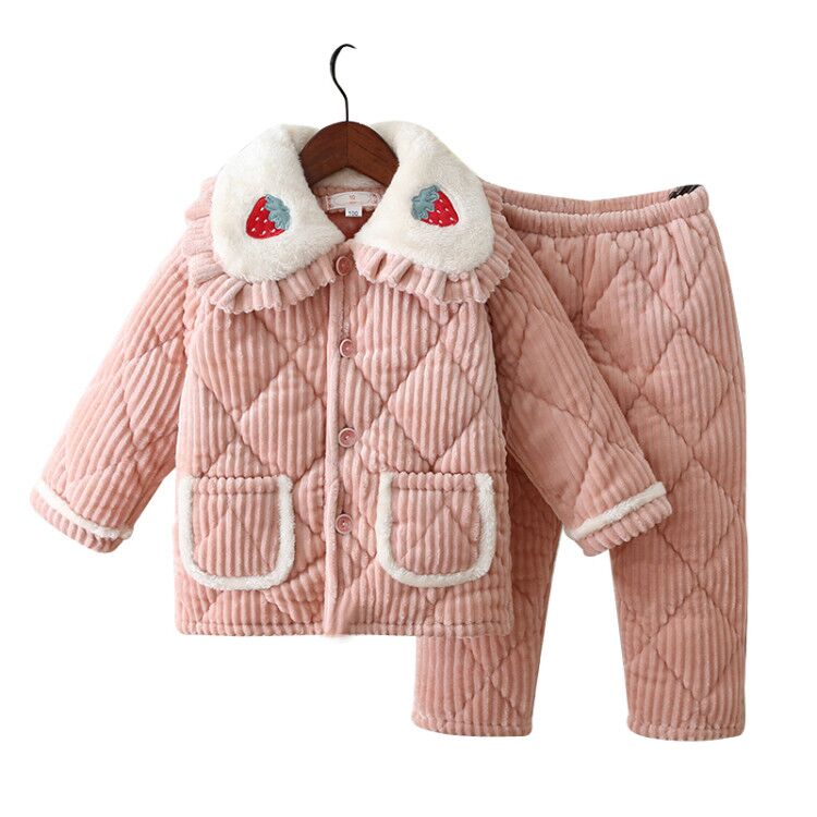 21款冬季儿童睡衣法兰绒三层加厚夹棉男女童小孩宝宝珊瑚绒套装