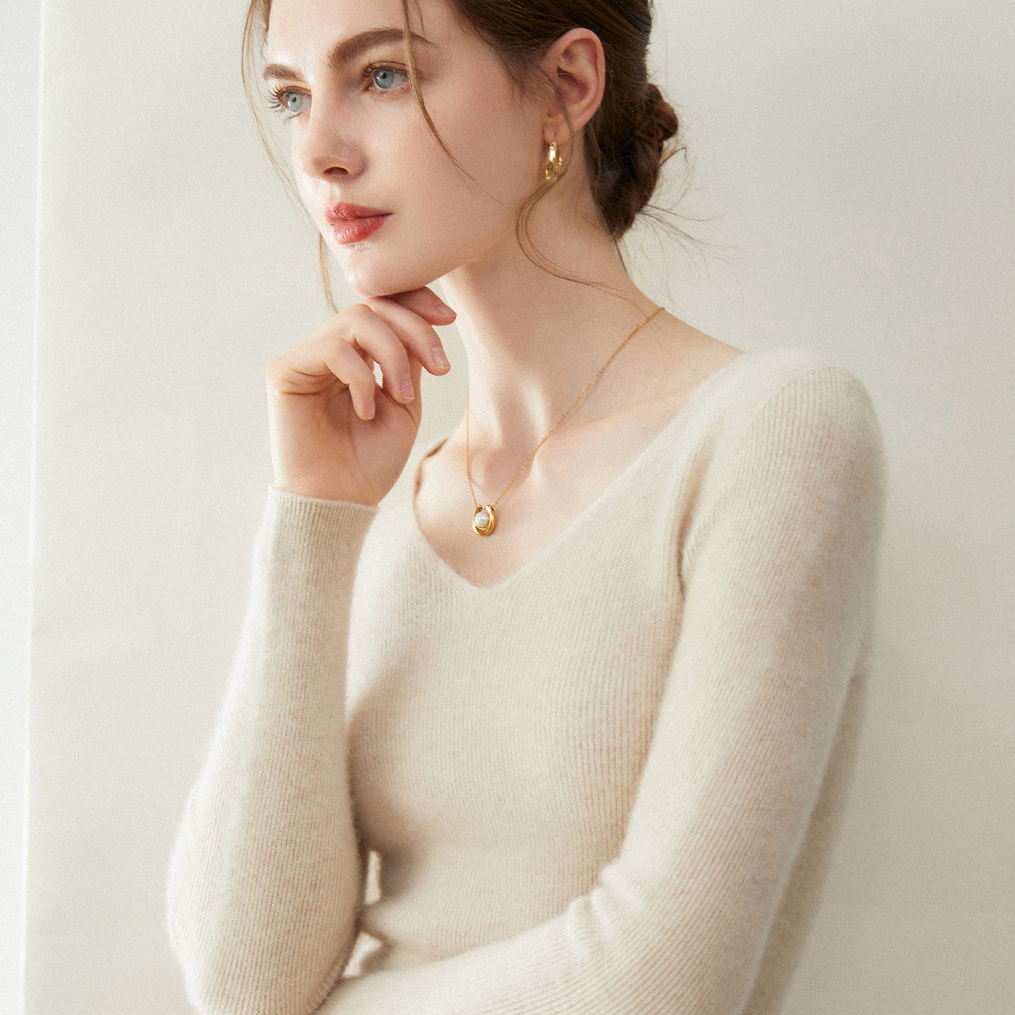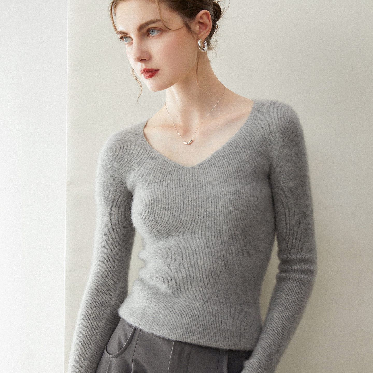 2025秋冬修身100纯山羊绒衫女V领紧身毛衣内搭针织羊绒打底衫毛衣