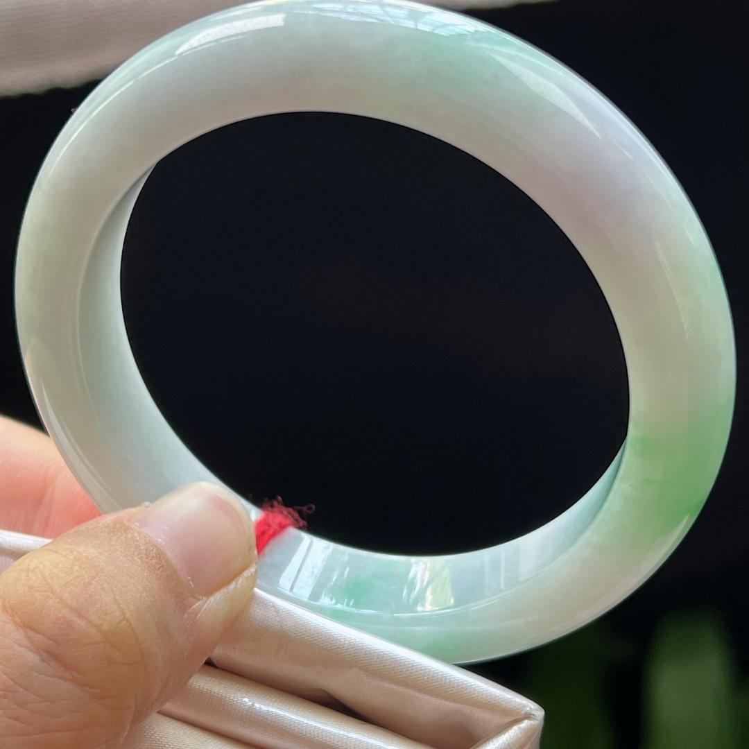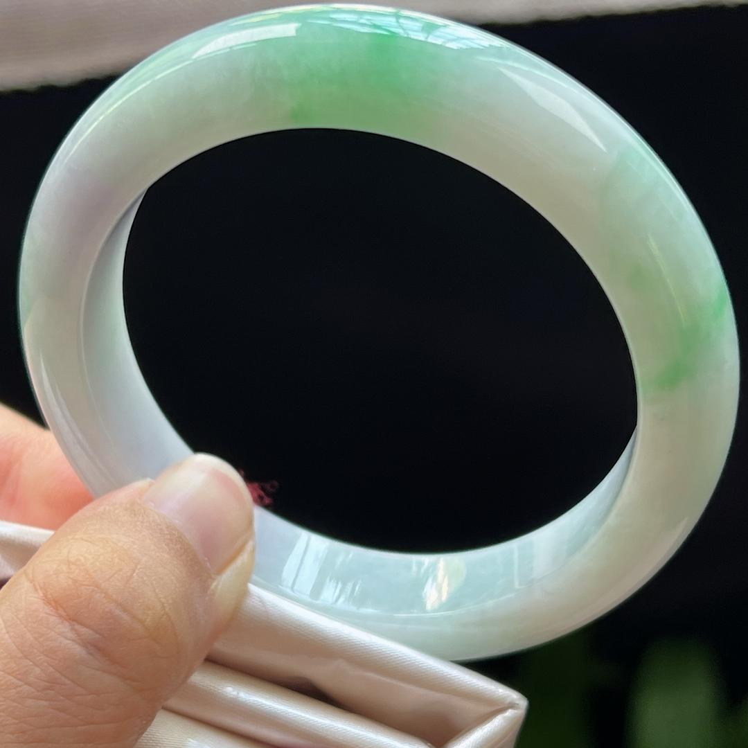 缅甸翡翠玉手镯平安镯正圈56圈口天然玉石A货冰糯种飘绿高档1003