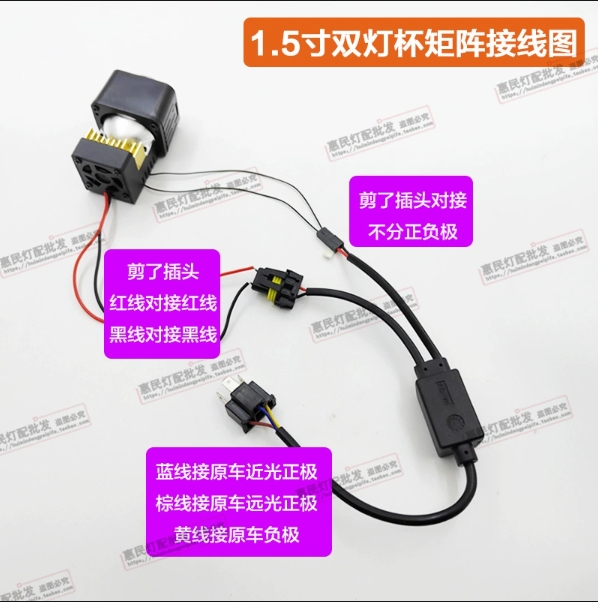 矩阵透镜1.5寸双灯杯汽车方灯改装双光远近光适合车灯位空间小车
