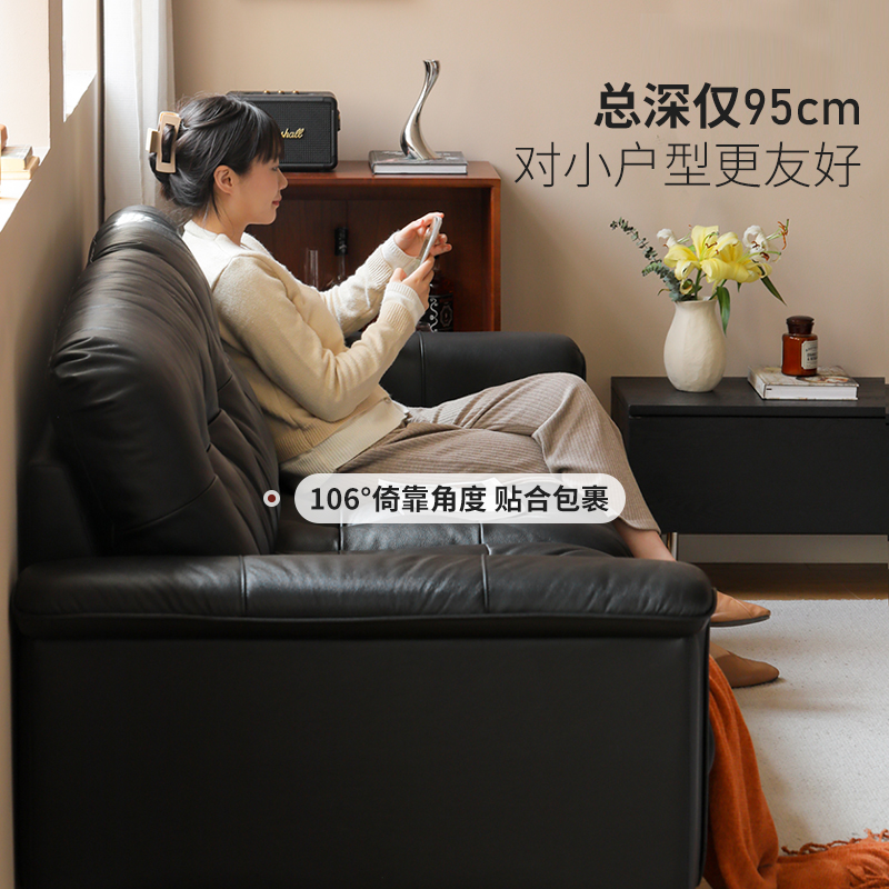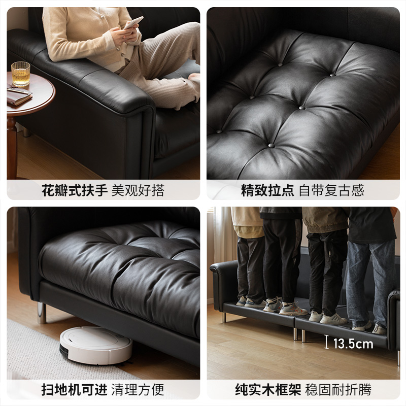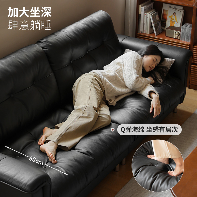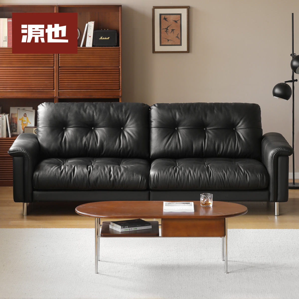 源也源氏木语真皮沙发客厅轻奢黑色沙发头层牛皮直排复中古风沙发