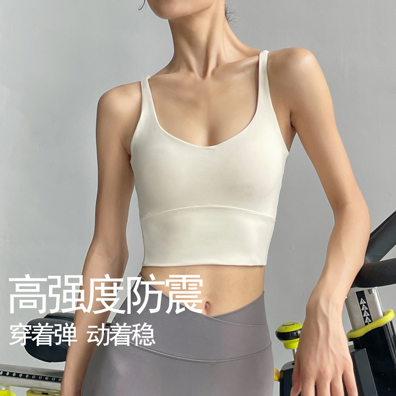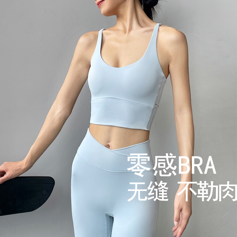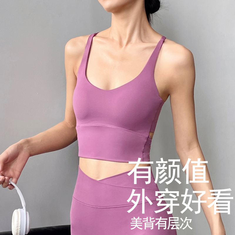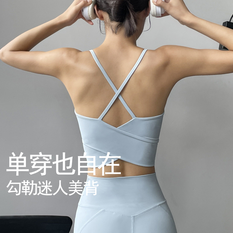 瑜伽服交叉美背防震运动内衣女一体式固定背心普拉提训练健身文胸