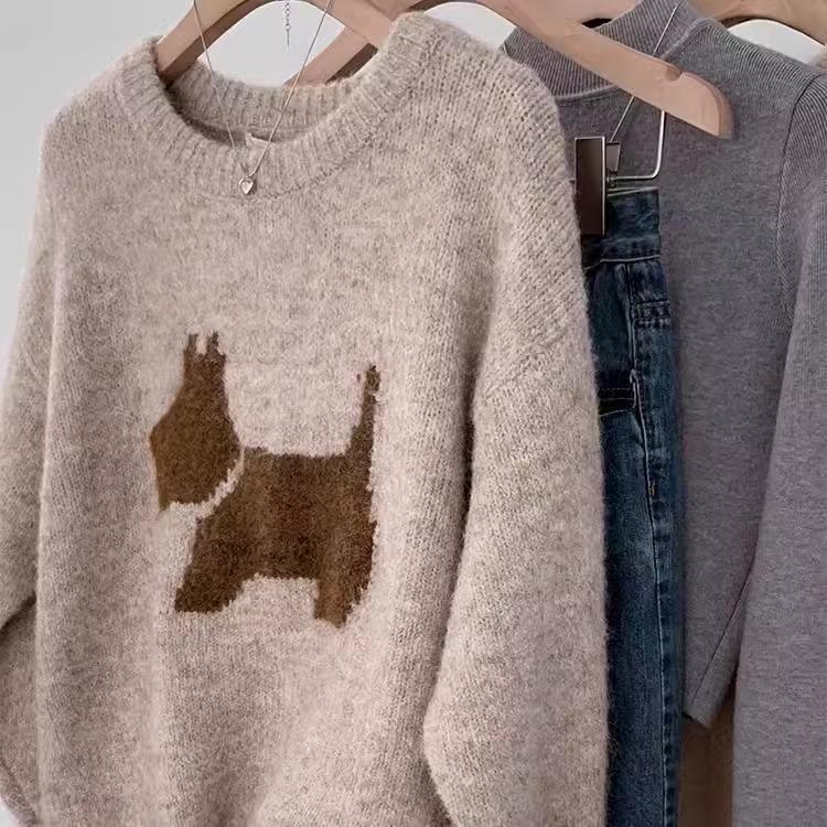 慵懒风宽松套头毛衣女秋冬季加厚外穿2024新款爆款短款针织衫上衣