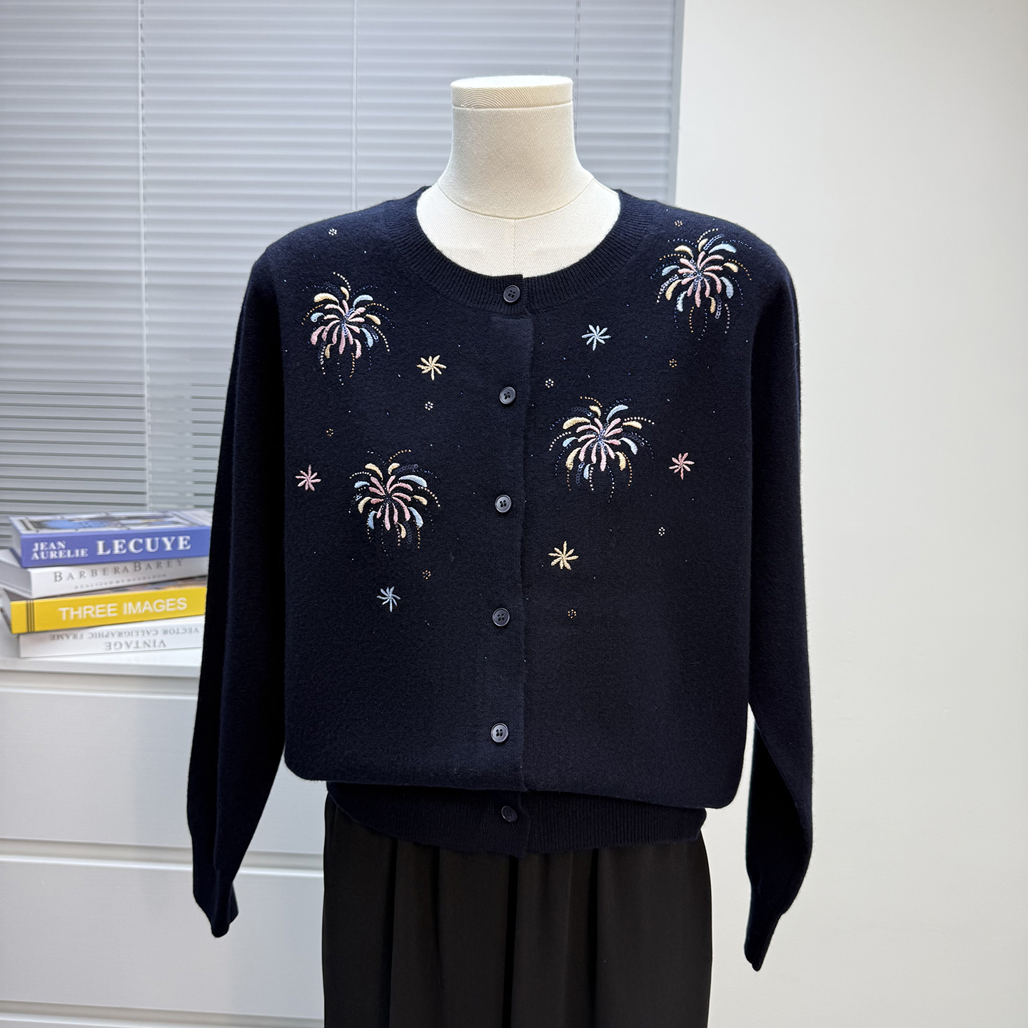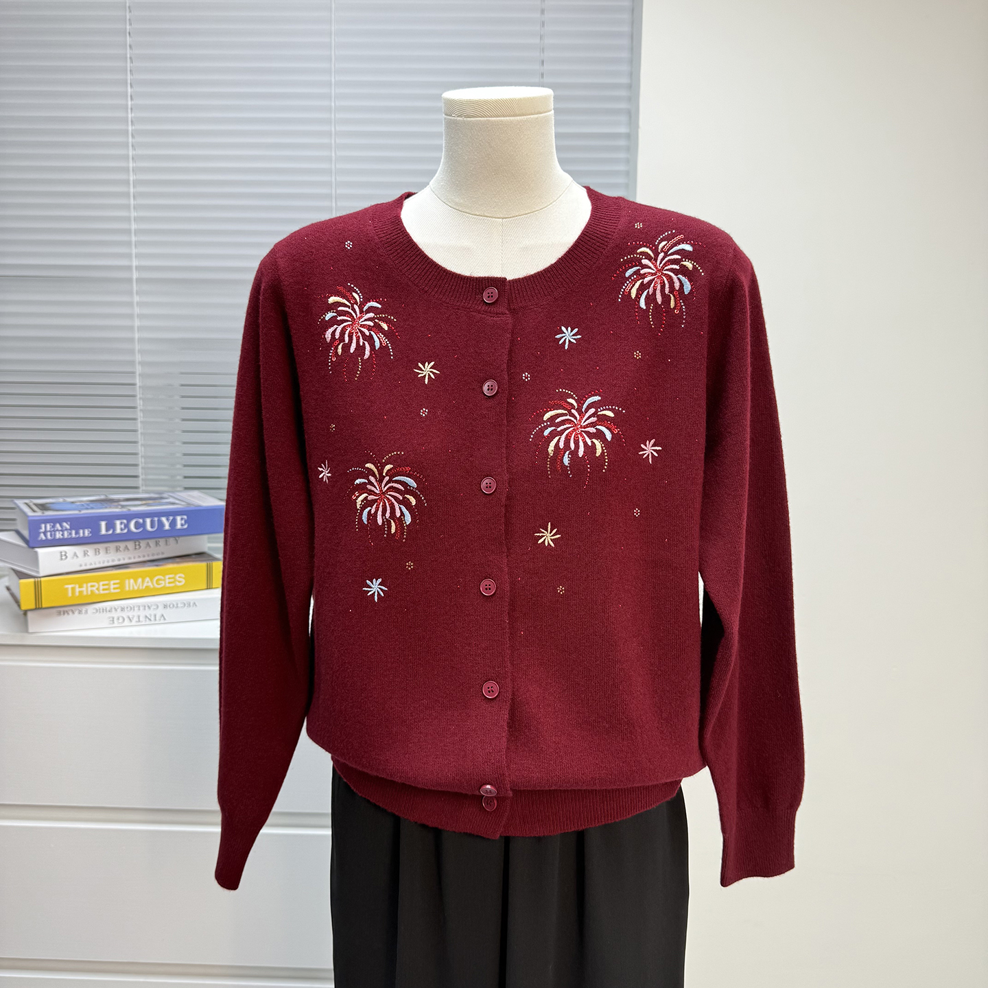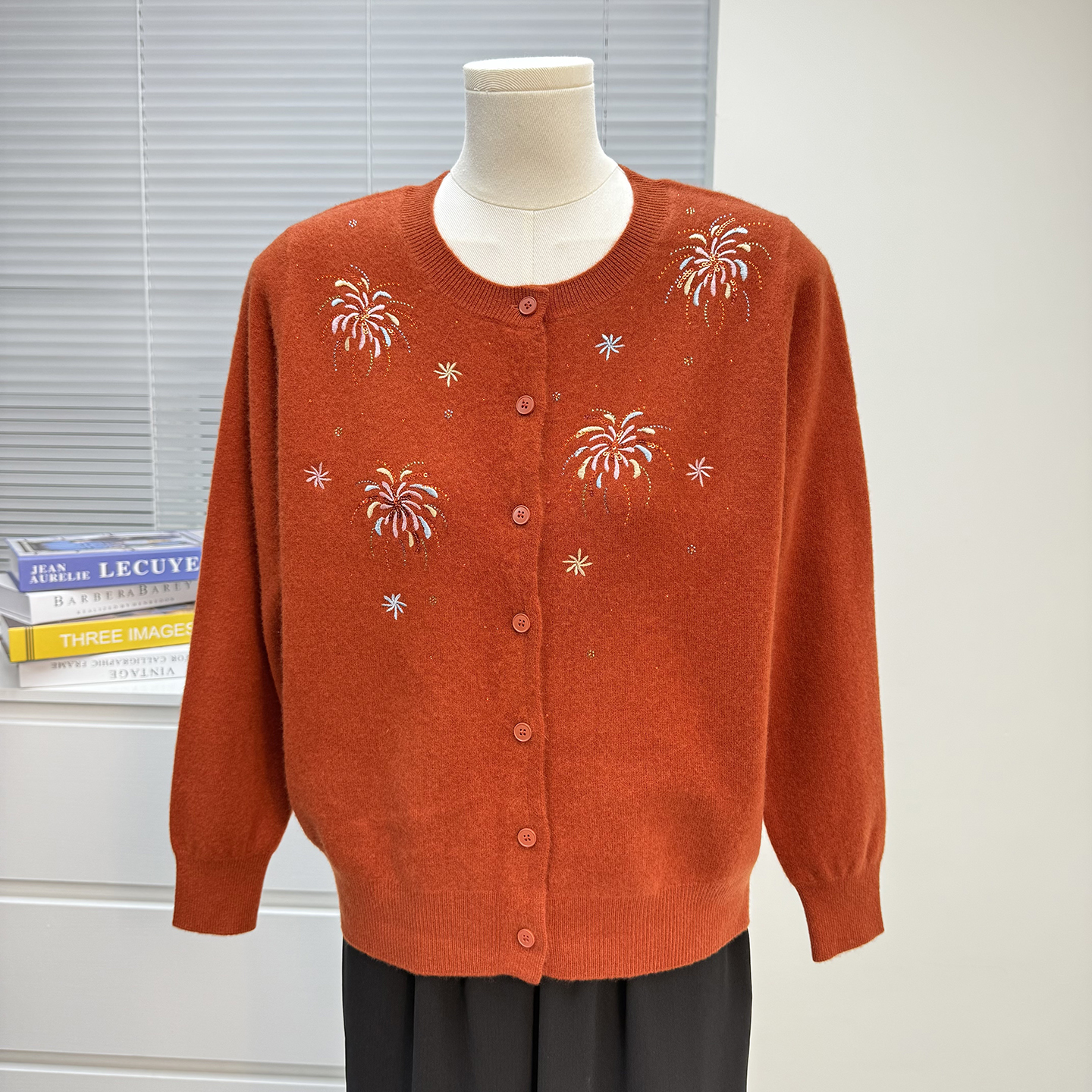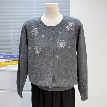 妈妈装秋冬款羊毛衫女100纯羊毛开衫毛衣中老年外套洋气绣花上衣
