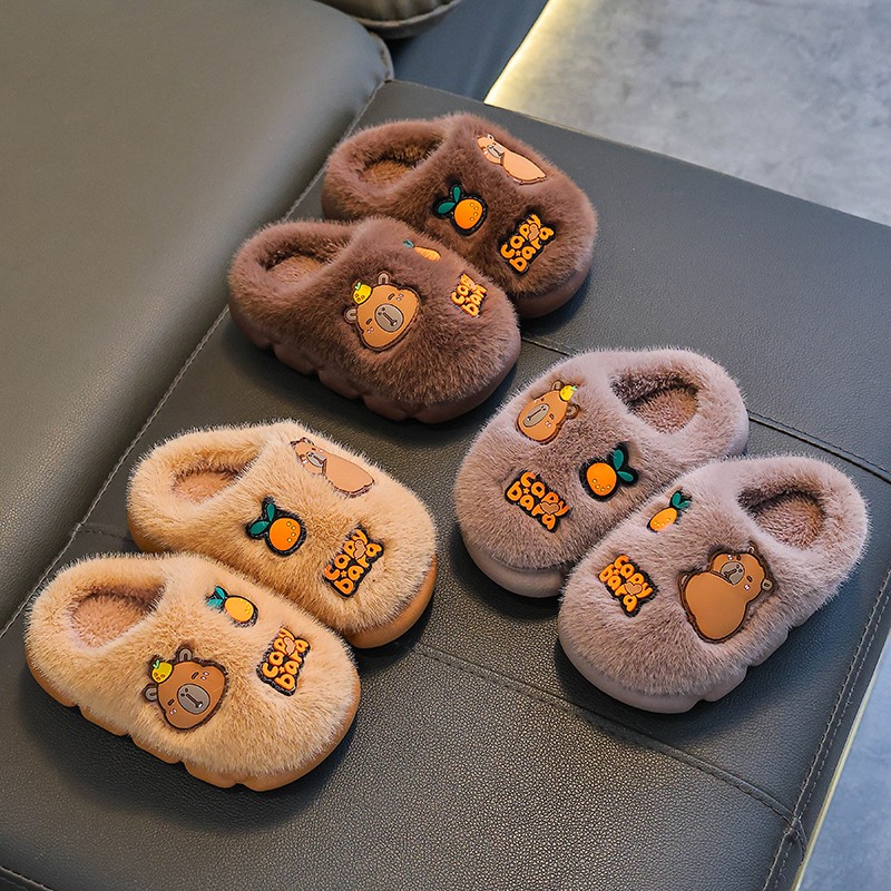 卡皮巴拉儿童棉拖鞋男童女童秋冬季保暖防滑家居加绒加厚毛绒棉鞋