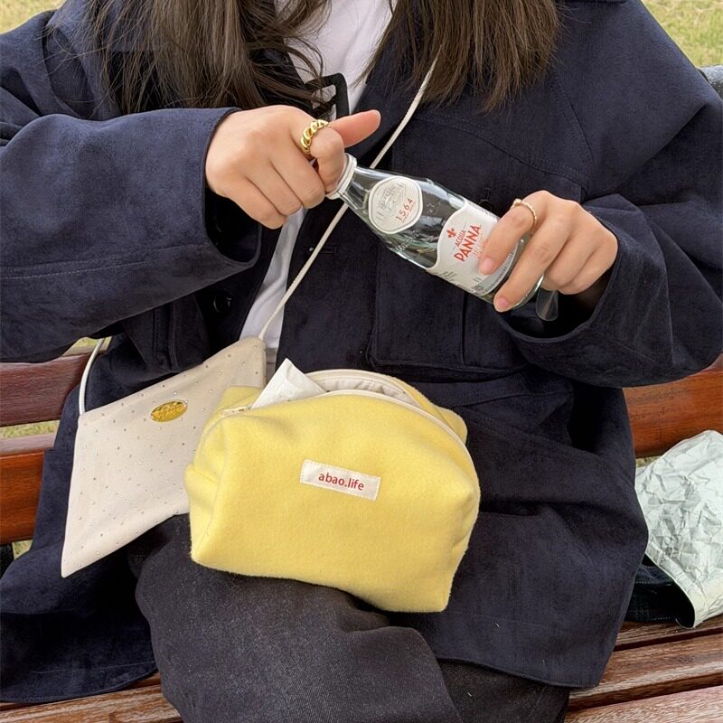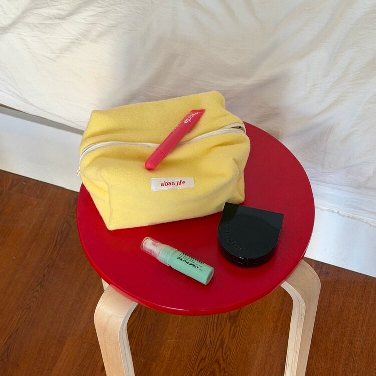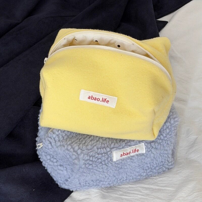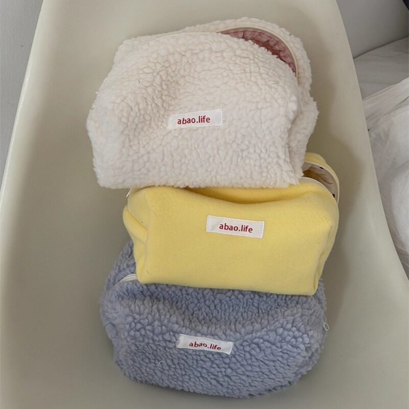 阿宝-自制韩国ins博主款小众设计摇粒绒毛绒撞色拼接大容量化妆包