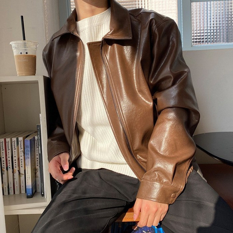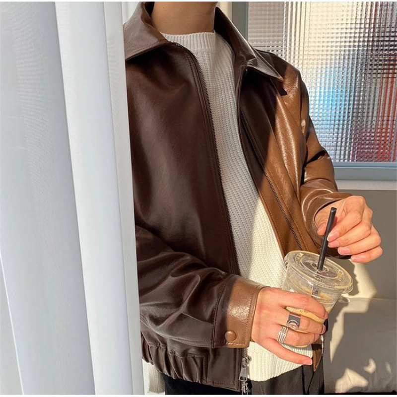 韩国风复古青年短款皮衣男宽松韩版机车服潮牌飞行员皮夹克外套
