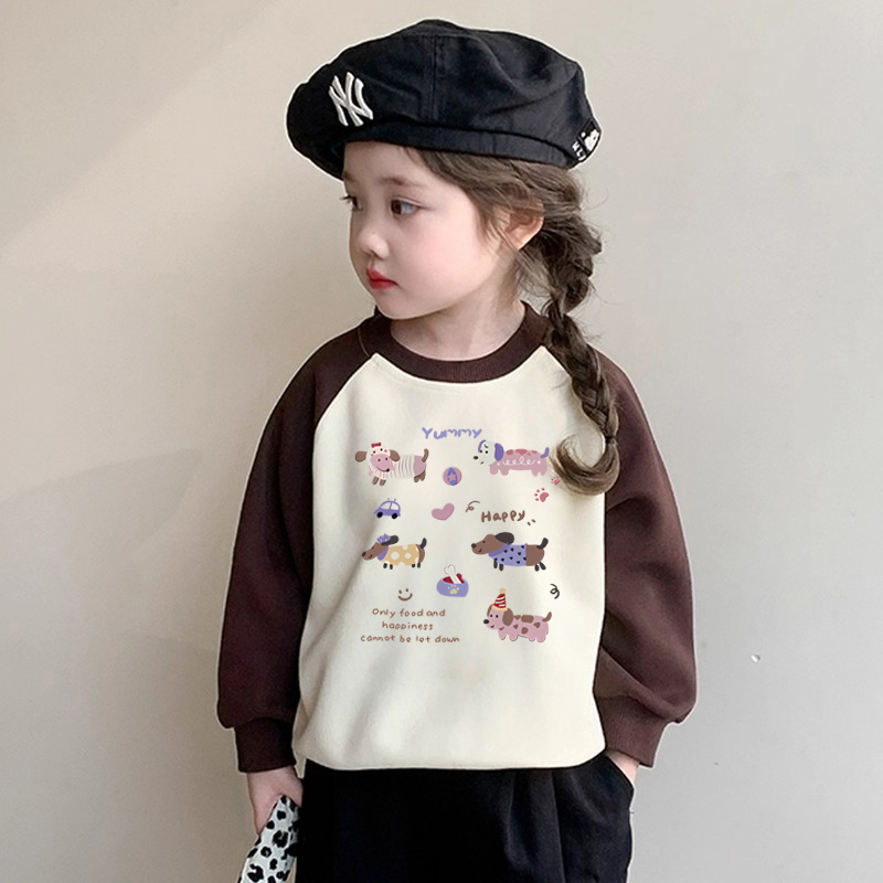 2025春秋新款女童圆领卫衣可爱小狗印花儿童休闲百搭长袖撞色上衣