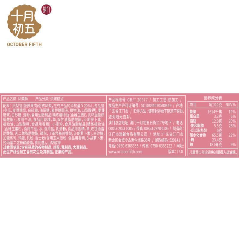 十月初五凤梨酥120g自制菠萝馅下午茶糕点零食中式糕点盒装