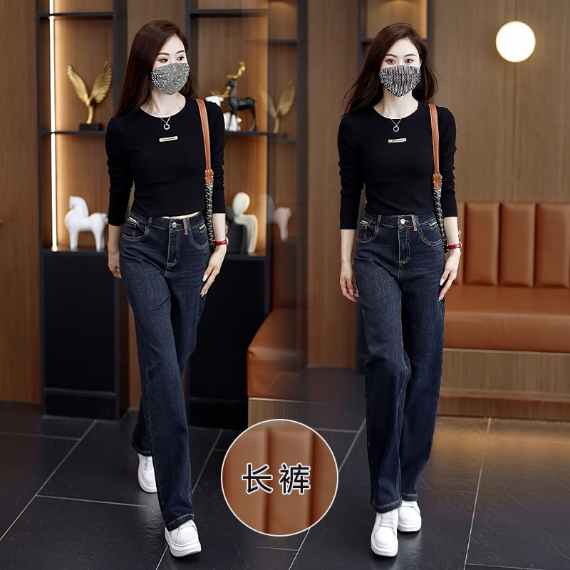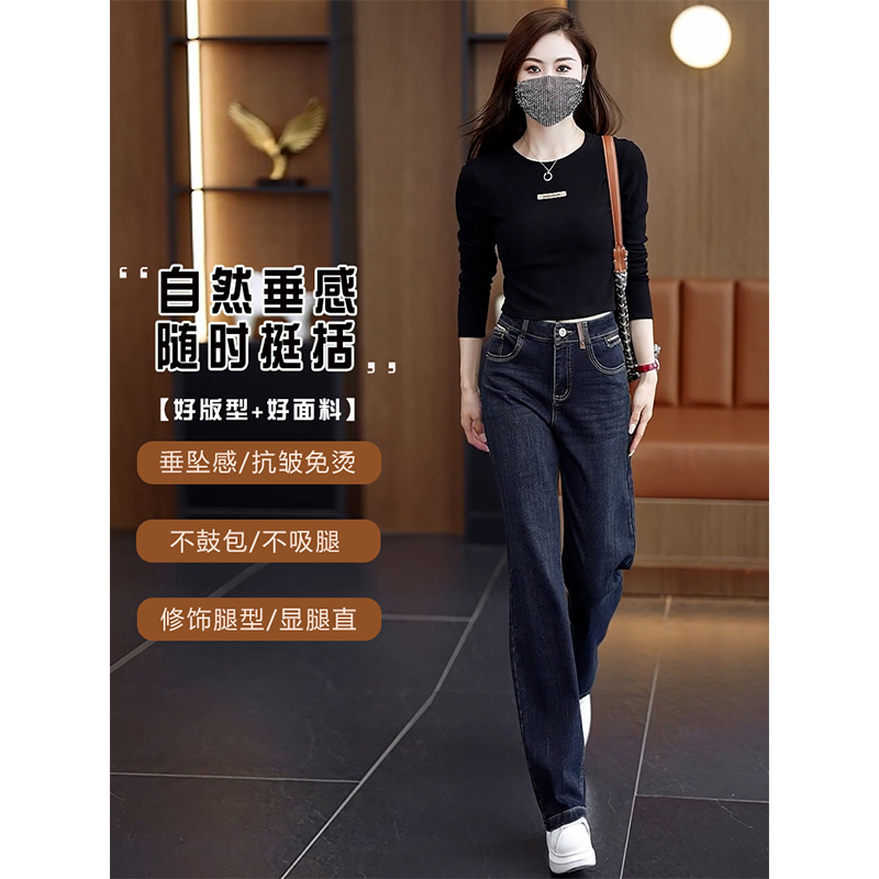 啄木鸟高腰宽松加绒加厚窄版阔腿牛仔裤女秋冬女士直筒裤子长裤