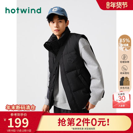 热风2023年冬季新款上衣男羽绒服加厚羽绒马甲立领无袖背心外套男