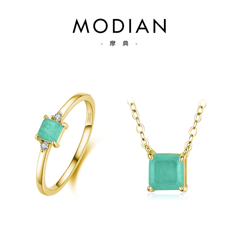 MODIAN925纯银轻奢合成碧玺ins个性项链女小众锁骨毛衣链戒指指环