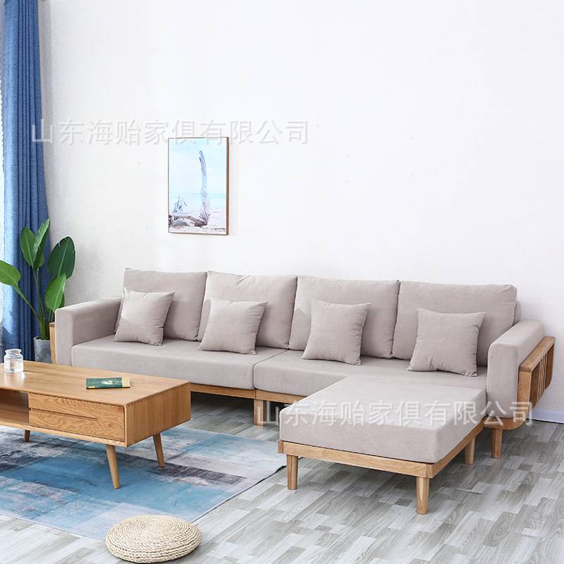 实木沙发 现代简约客厅组合布艺转角沙发 小户型可拆洗沙发