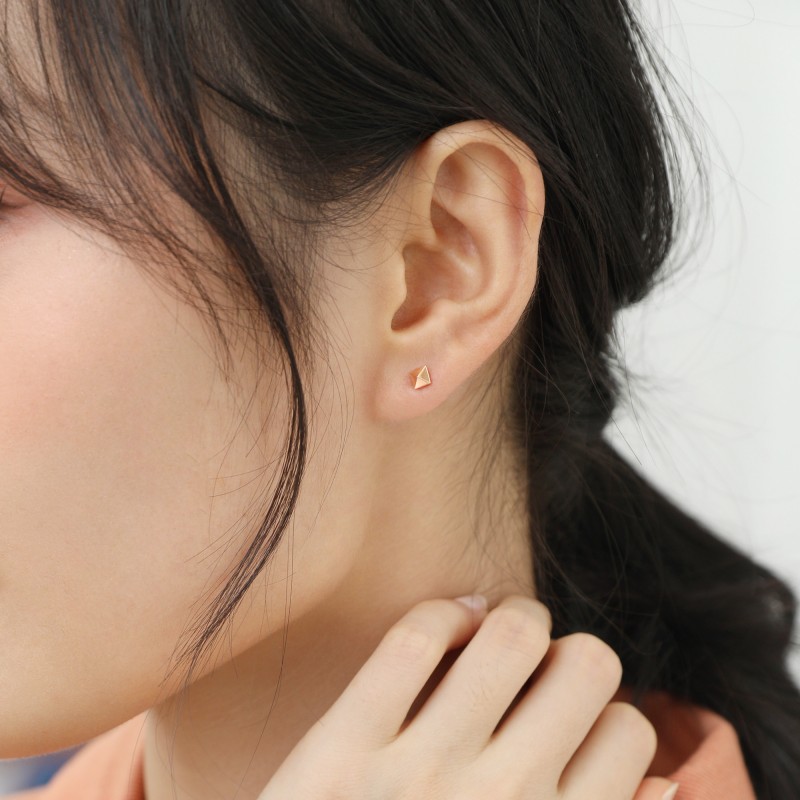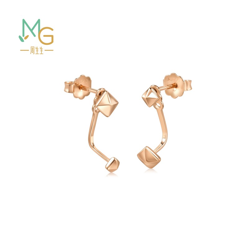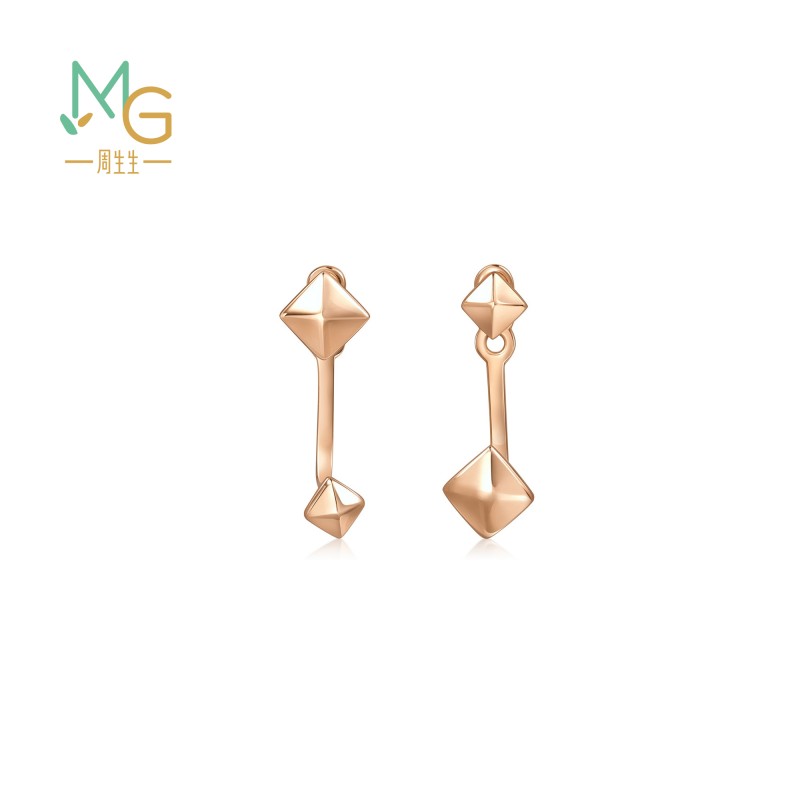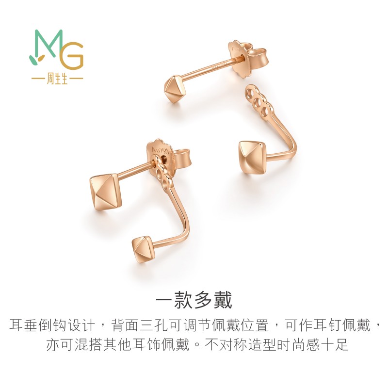 周生生18K玫瑰金薄荷系列方形铆钉耳钉耳饰92812E