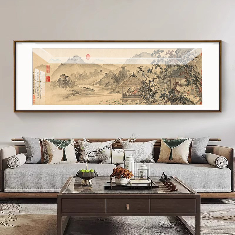 张大千山水画新中式客厅装饰画办公室挂画字画沙发背景墙壁画国画