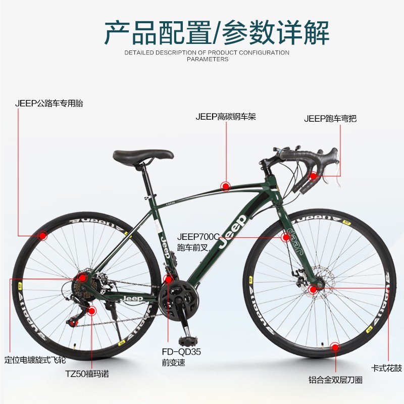 Jeep吉普公路自行车碟刹变速成人男女学生通勤代步竞速单车-风驰