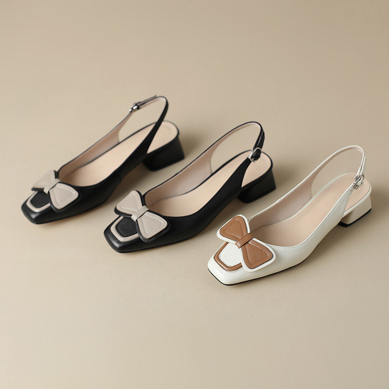 仙女风配裙子韩版甜美蝴蝶结粗跟中跟方头凉鞋女夏季包头后空单鞋