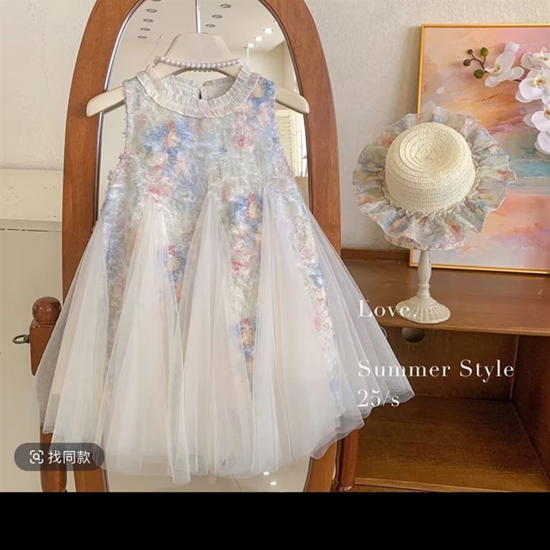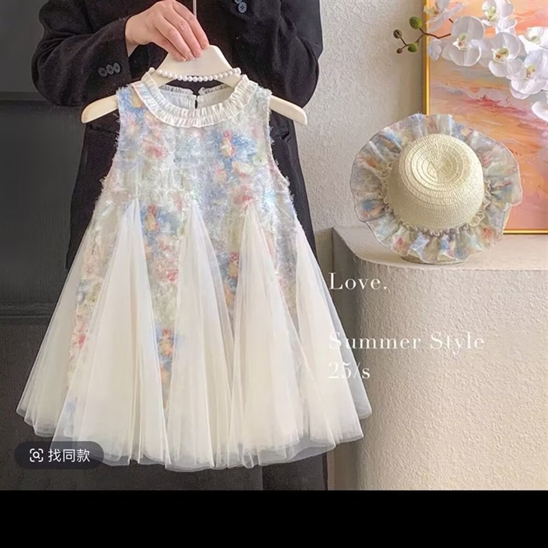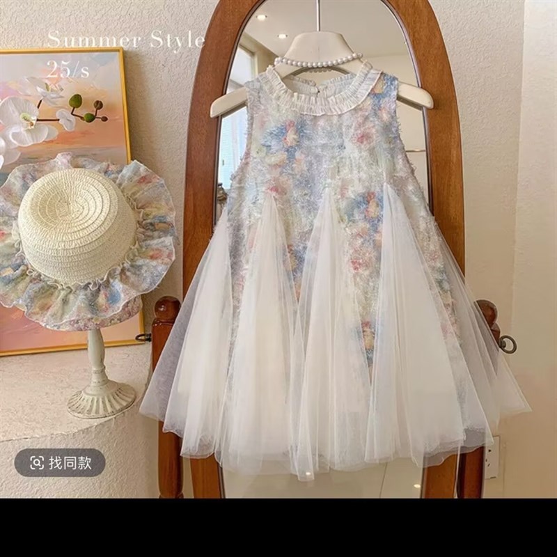 女童夏装小女孩碎花连衣裙网纱公主2025新款儿童洋气夏季背心裙子