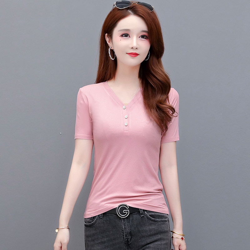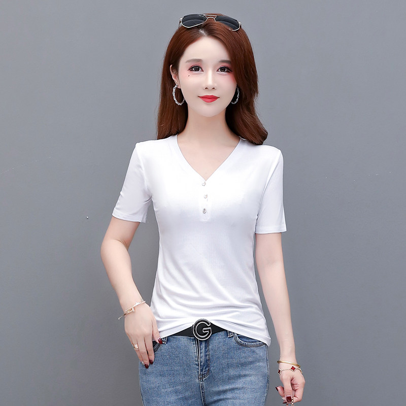 夏季冰丝莫代尔短袖t恤女装薄款宽松大码打底衫宽松长袖纯色上衣