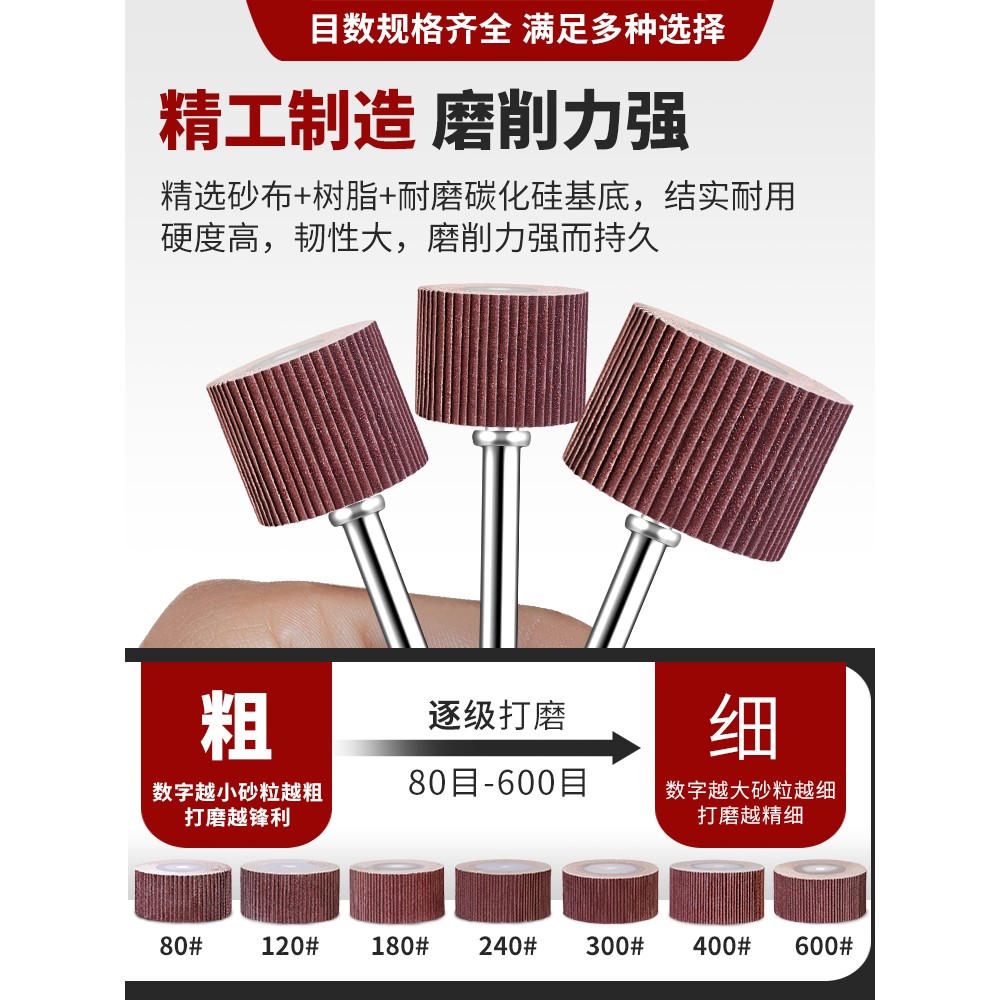 活柄百叶轮磨头带柄砂纸砂布轮千叶轮抛光轮电磨内磨机气动打磨头