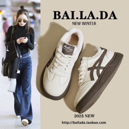 爆款加绒德训小白女鞋女款2025秋冬季新款百搭休闲板鞋平底白鞋子
