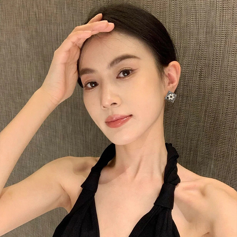 复古珍珠款花朵耳钉女洋气不对称高级设计感耳环日常百搭纯银耳饰