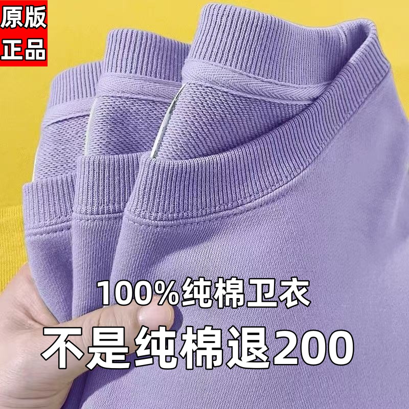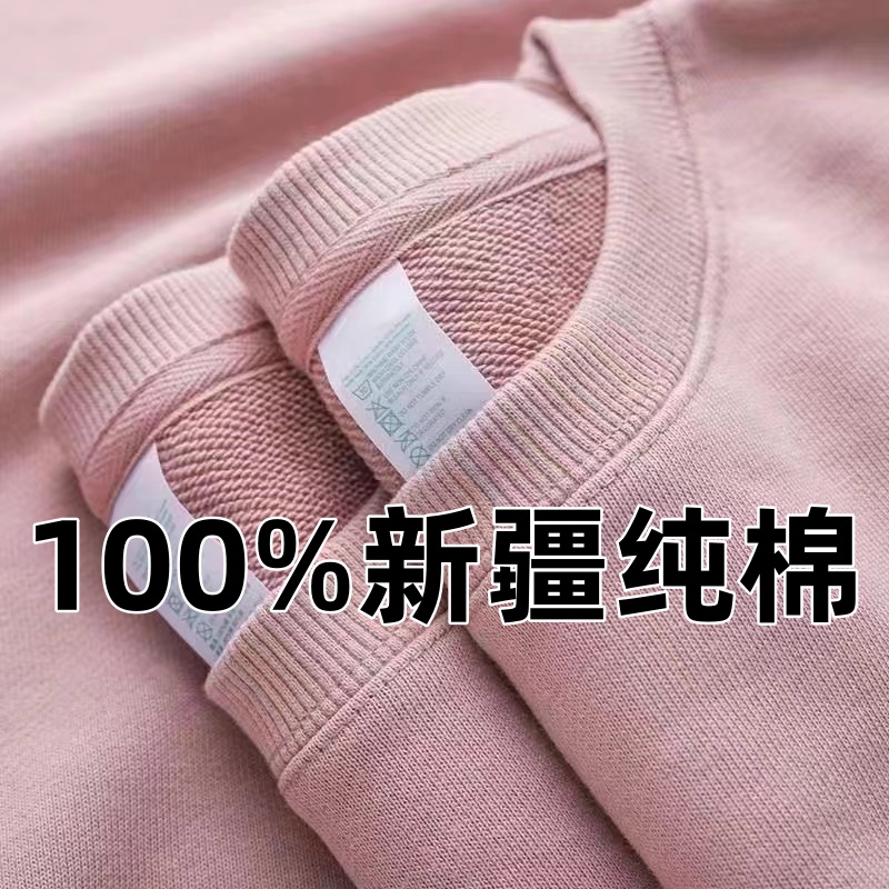 日系100%重磅纯棉卫衣圆领套头男女同款长袖学生宽松大码打底上衣