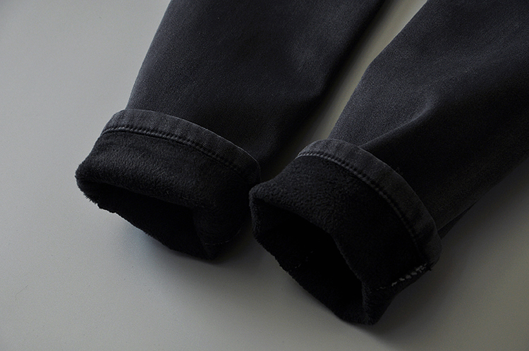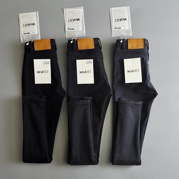 2025秋季TB加绒加厚高弹力牛仔裤女长裤保暖高腰灰色外穿小脚裤女
