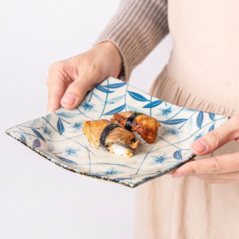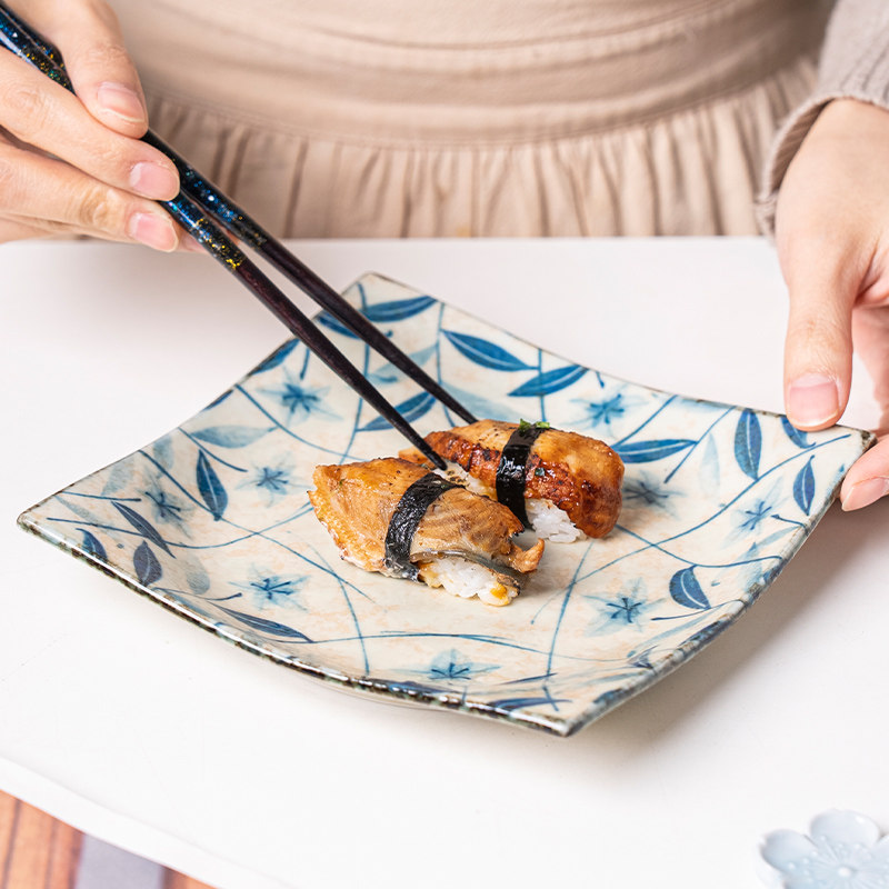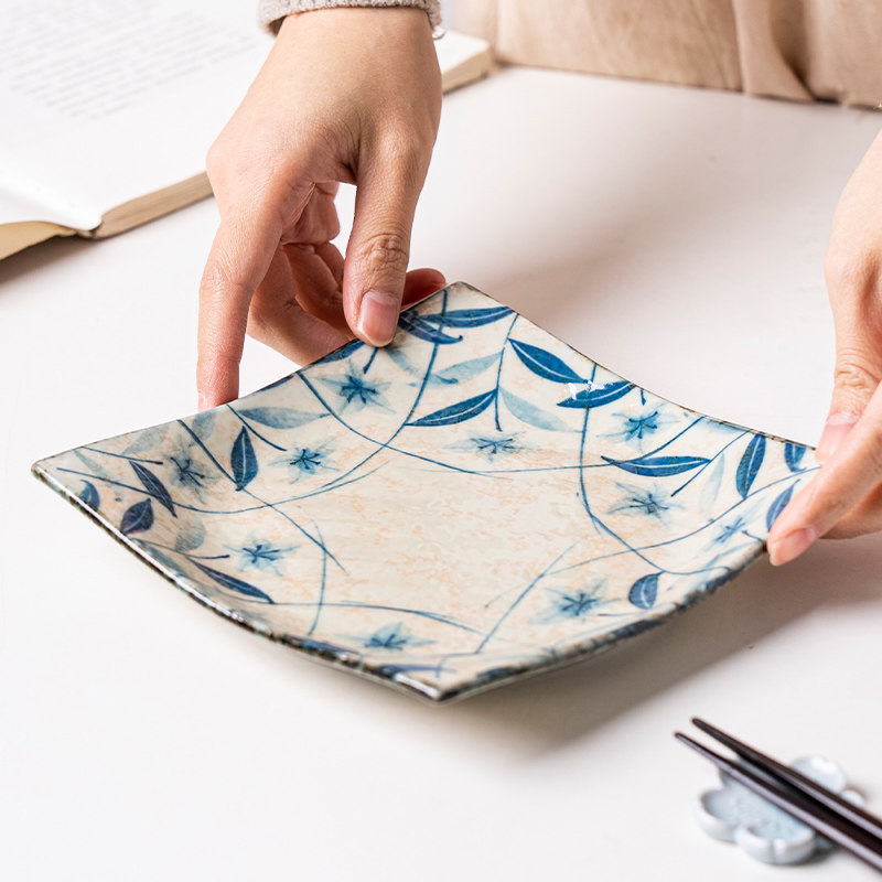 日本进口四方盘小鹿田烧日式陶瓷黄泥桔梗盘子家用点心水果盘餐具