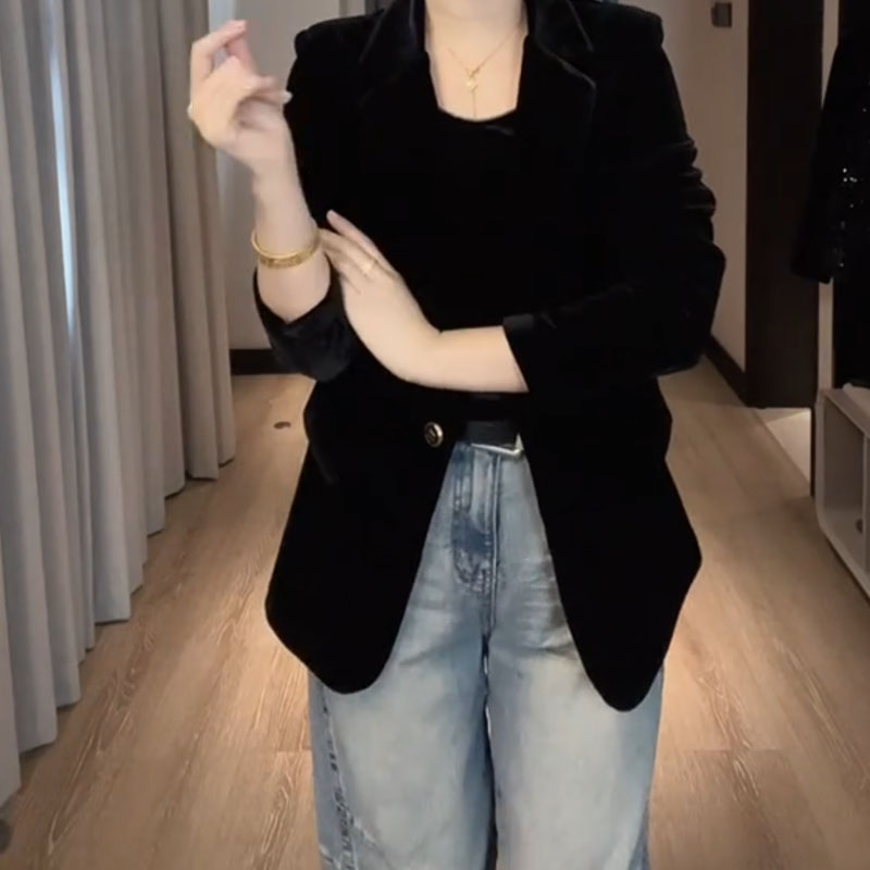 丝绒气质一粒扣高级感西装外套