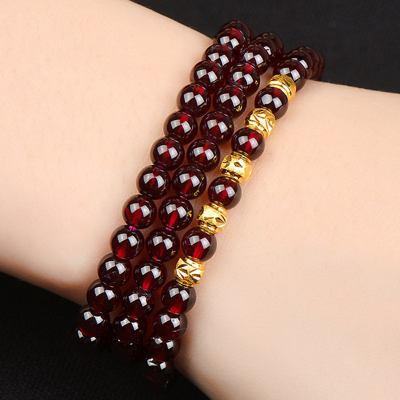 红石榴石手链女士转运珠黄金正品天然水晶手串三圈多圈送女友礼物
