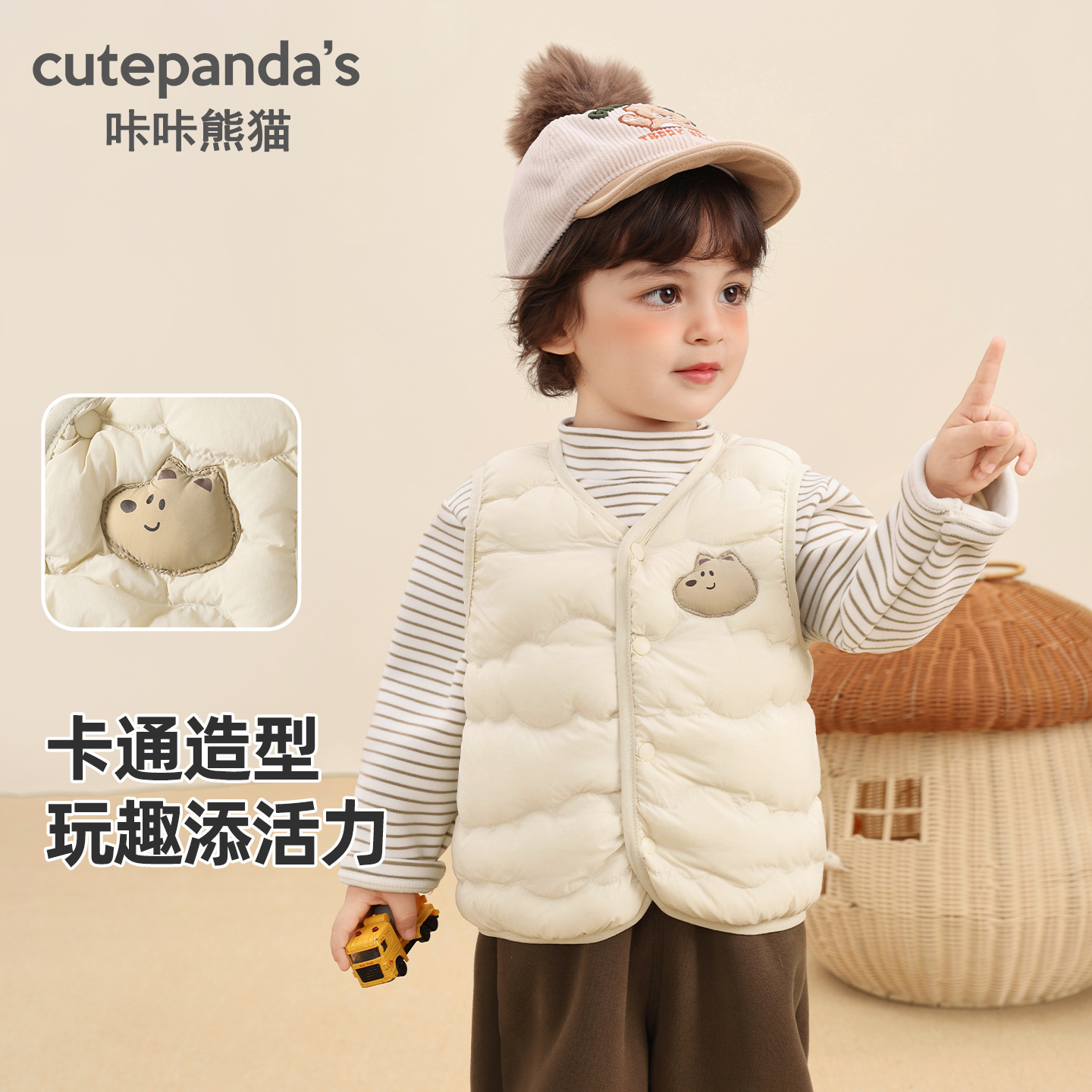 咔咔熊猫儿童羽绒马甲男童冬装婴儿冬季保暖背心女童宝宝秋冬