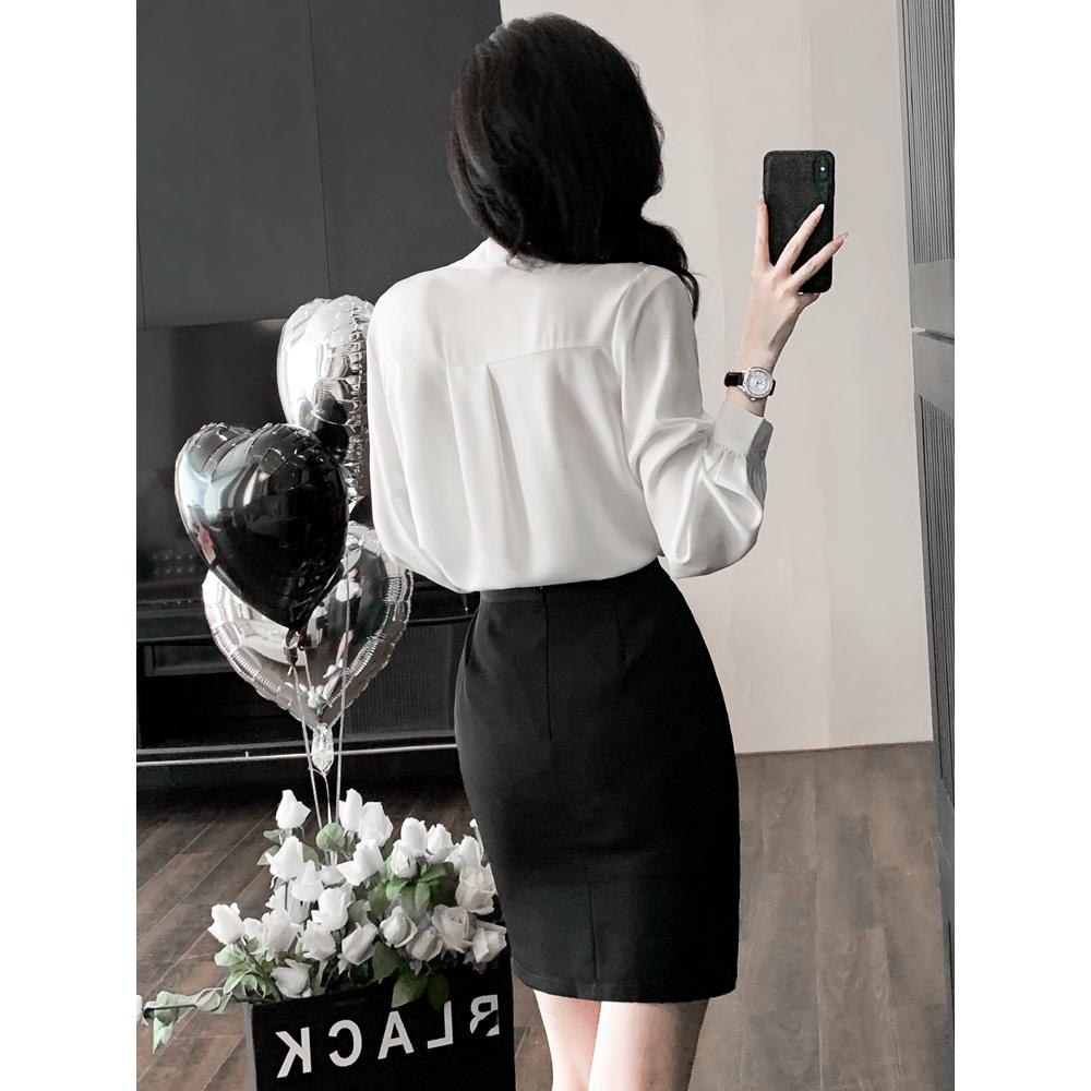 白色长袖职业衬衫女高级感套装裙2025新款秋冬空姐制服接待工作服