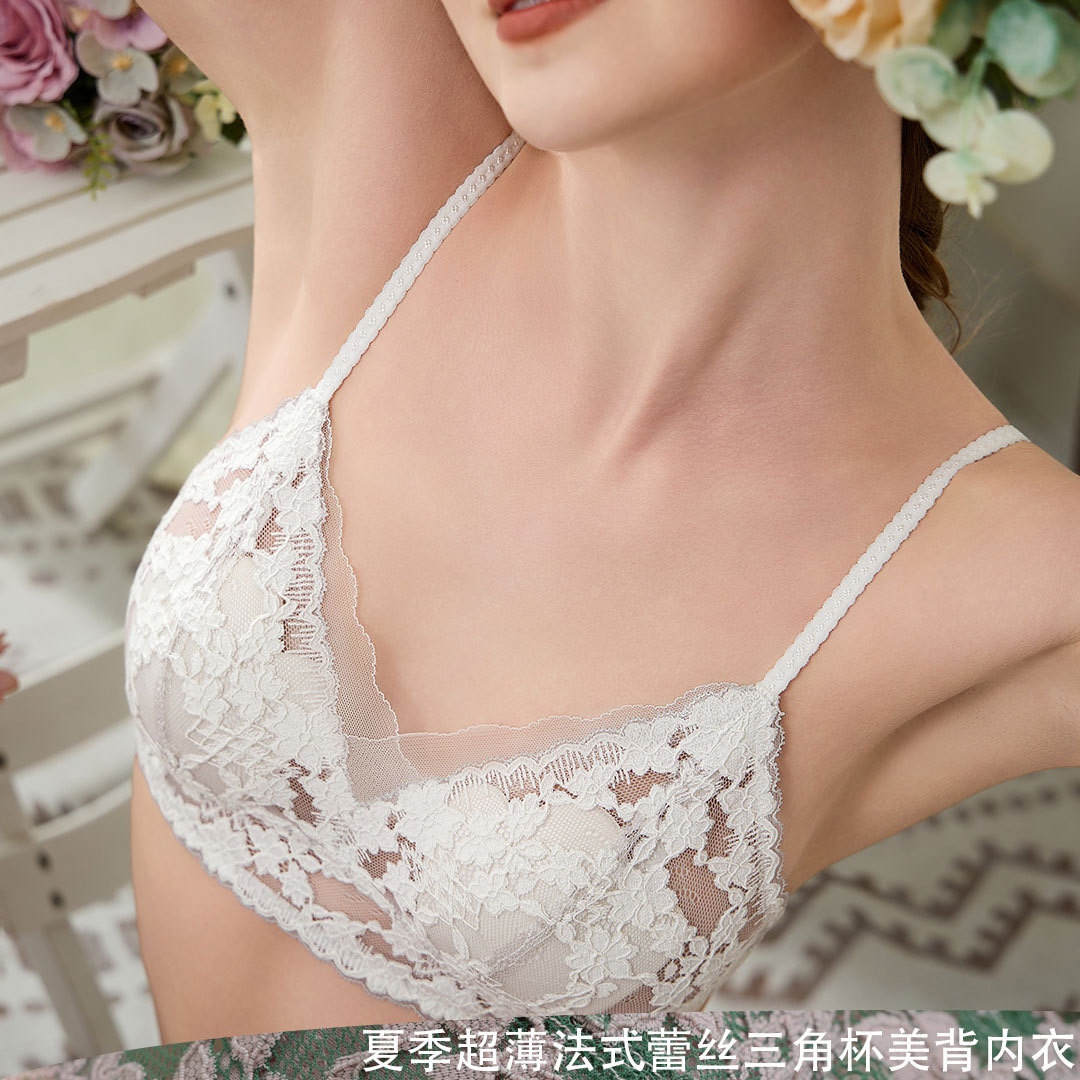 法式浪漫蕾丝美背三角杯内衣套装夏大露背无钢圈纯欲文胸薄款