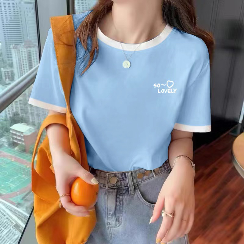 小众别致天空浅蓝色短袖t恤女2025夏季新款纯棉正肩宽松上衣百搭