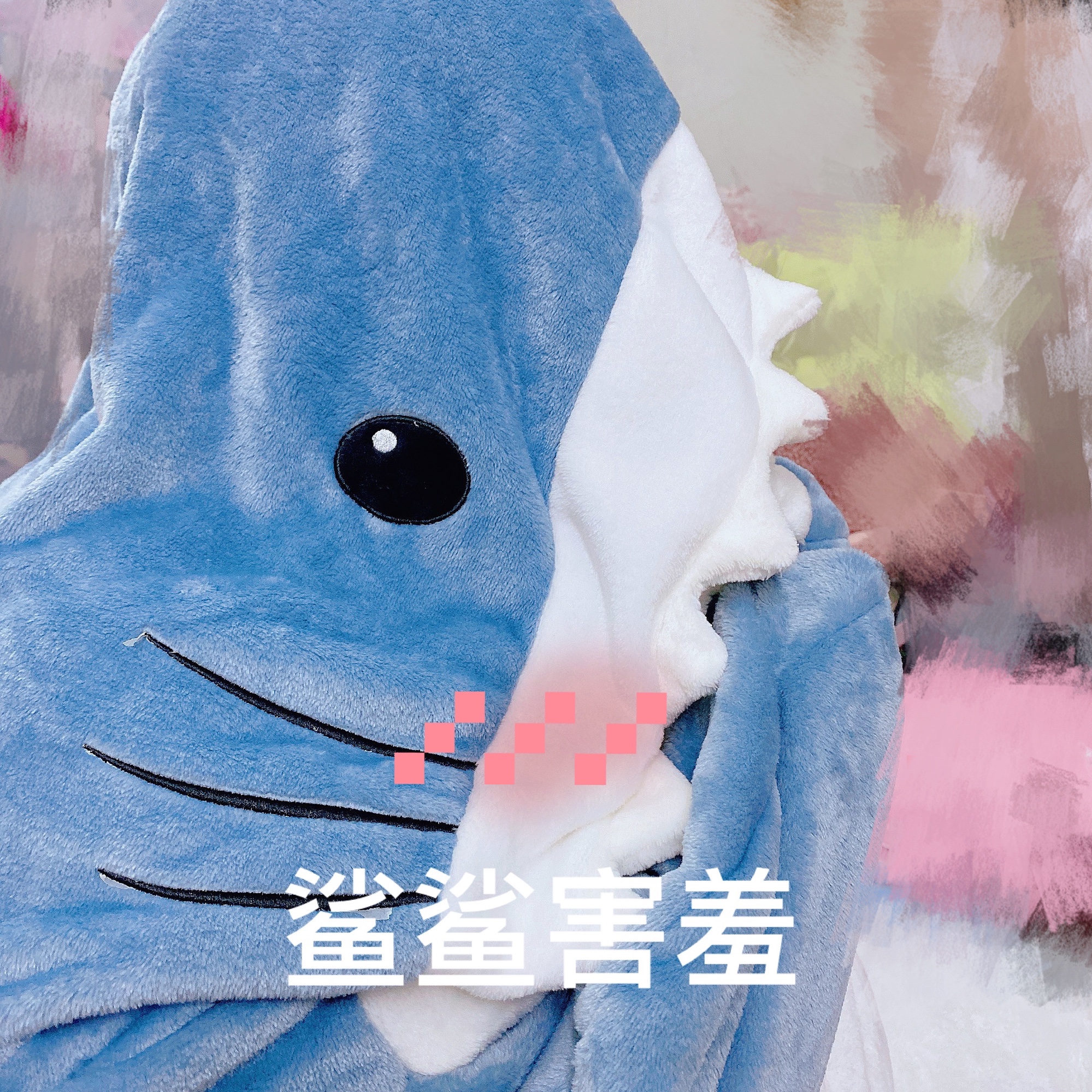 现货沙雕鲨鱼睡袋睡衣法兰绒搞怪礼物背后带拉链可以伸出手