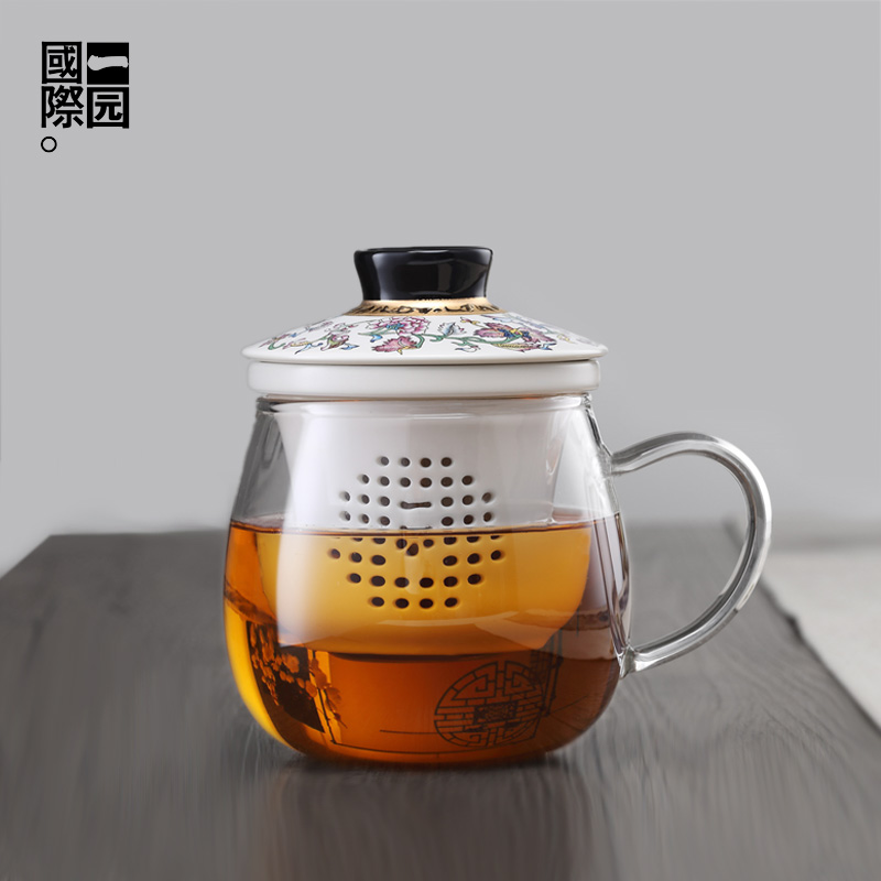 一园陶瓷过滤泡茶杯茶水分离办公室个人专用花茶杯带盖带把玻璃杯