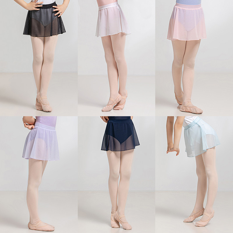 Sansha 三沙儿童舞蹈裙女 纯色芭蕾舞短裙垂顺半身纱裙练功裙艺考
