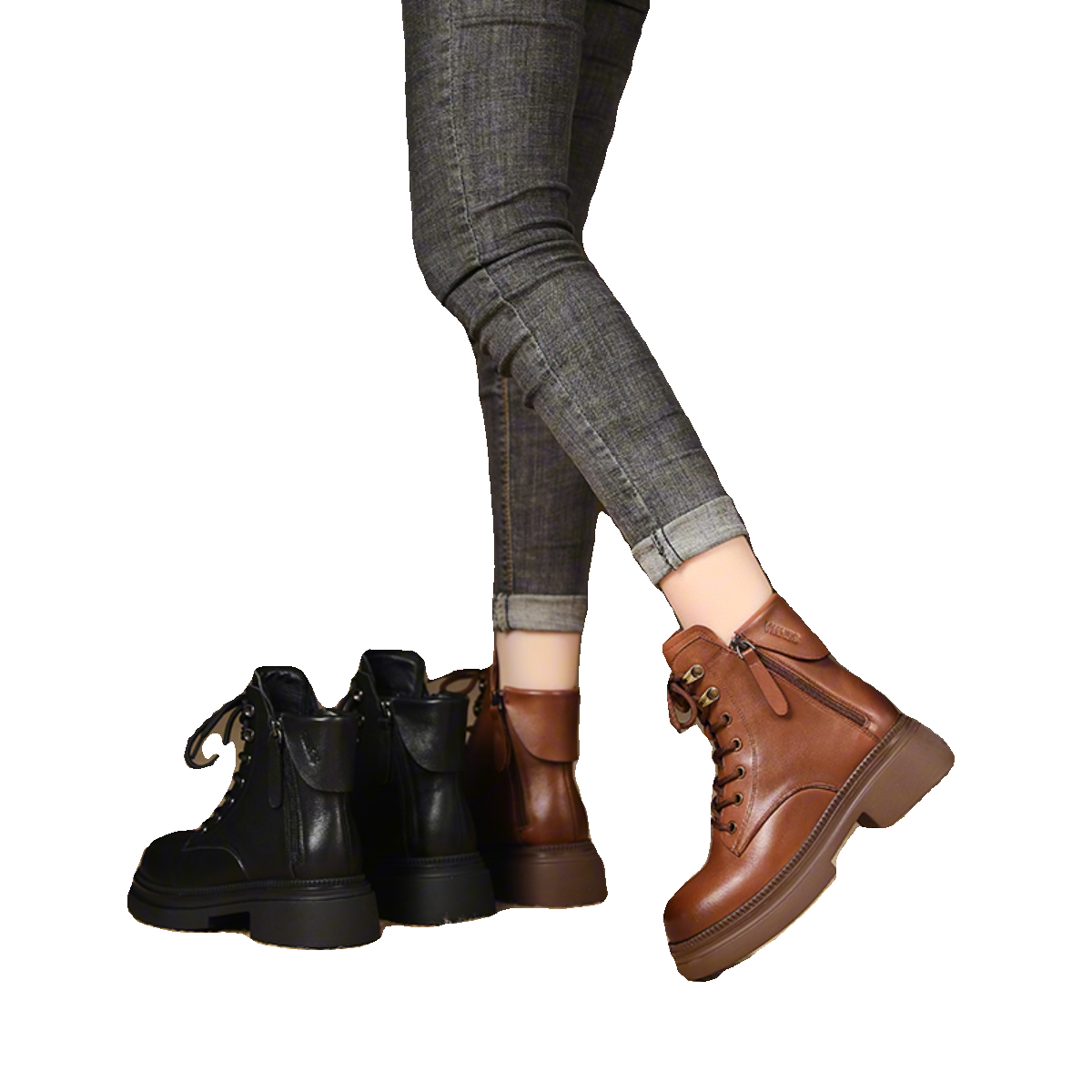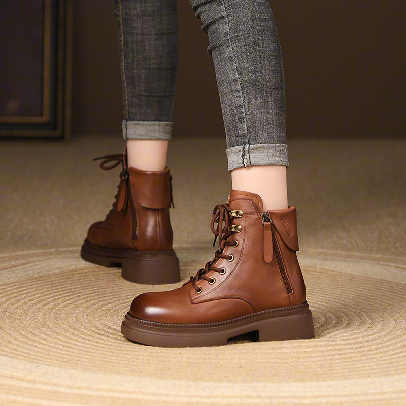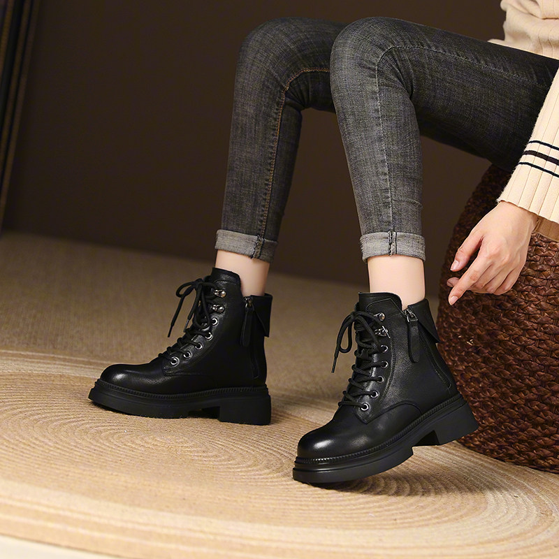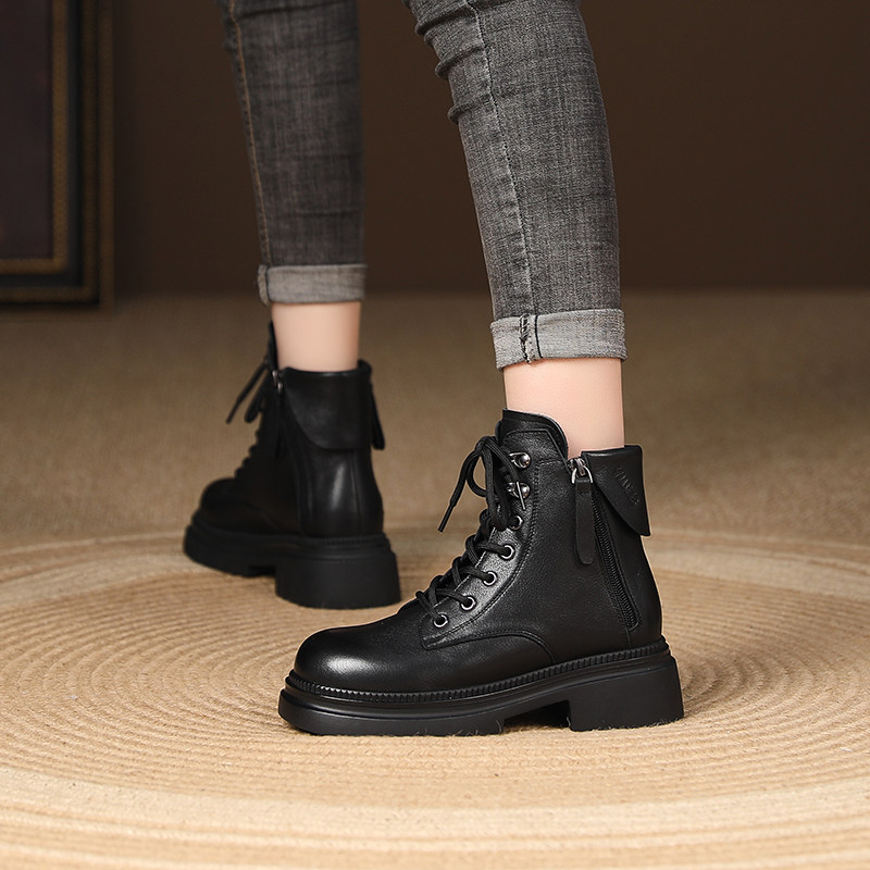 英伦风马丁靴女真皮厚底短靴女2025秋冬新款圆头今年流行的单靴子