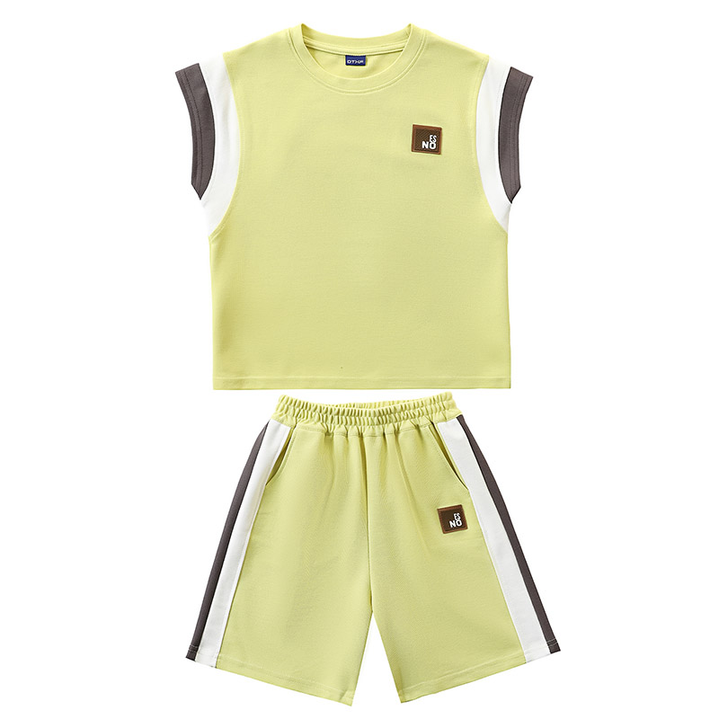 男童夏装套装2025薄款儿童帅气拼接背心短裤大童休闲运动两件套潮