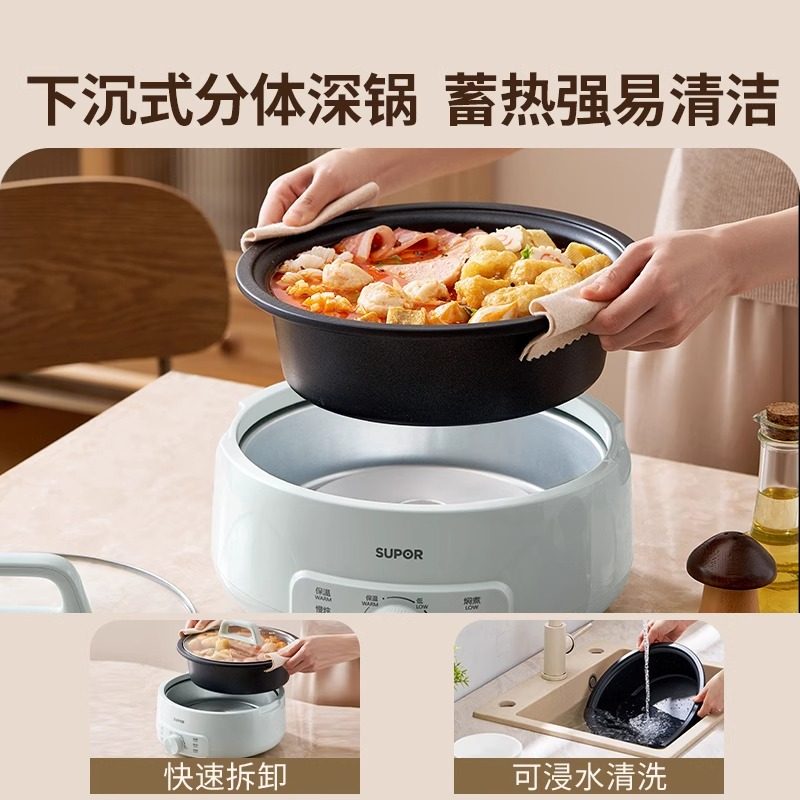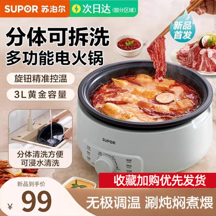 苏泊尔电火锅家用多功能可拆洗3L-4L新款电热火锅分体式小电煮锅