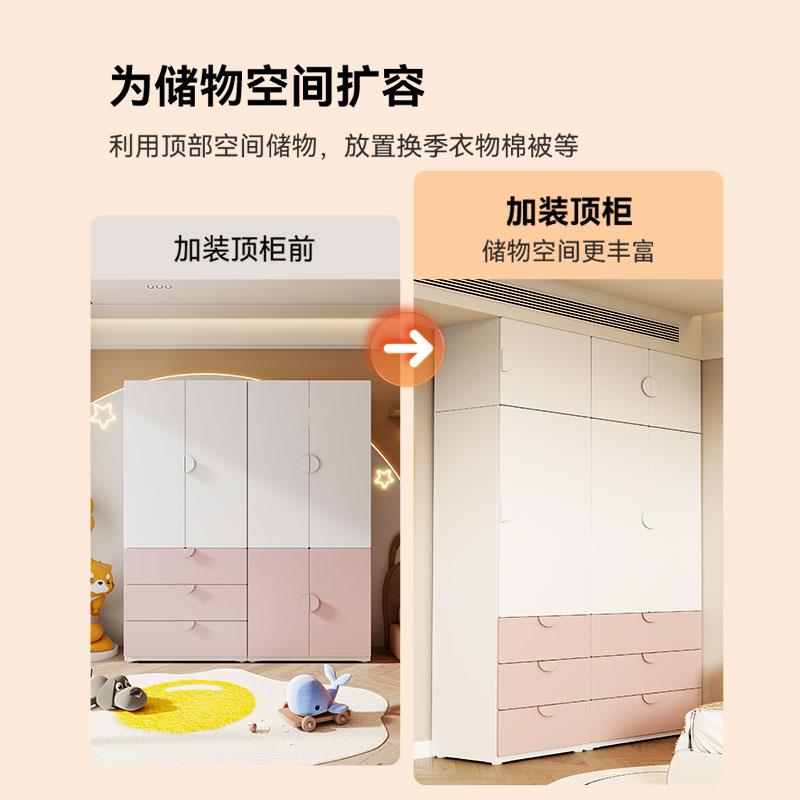钢制衣柜家用卧室拼色儿童组合衣橱金属带抽屉简易组装收纳储物柜