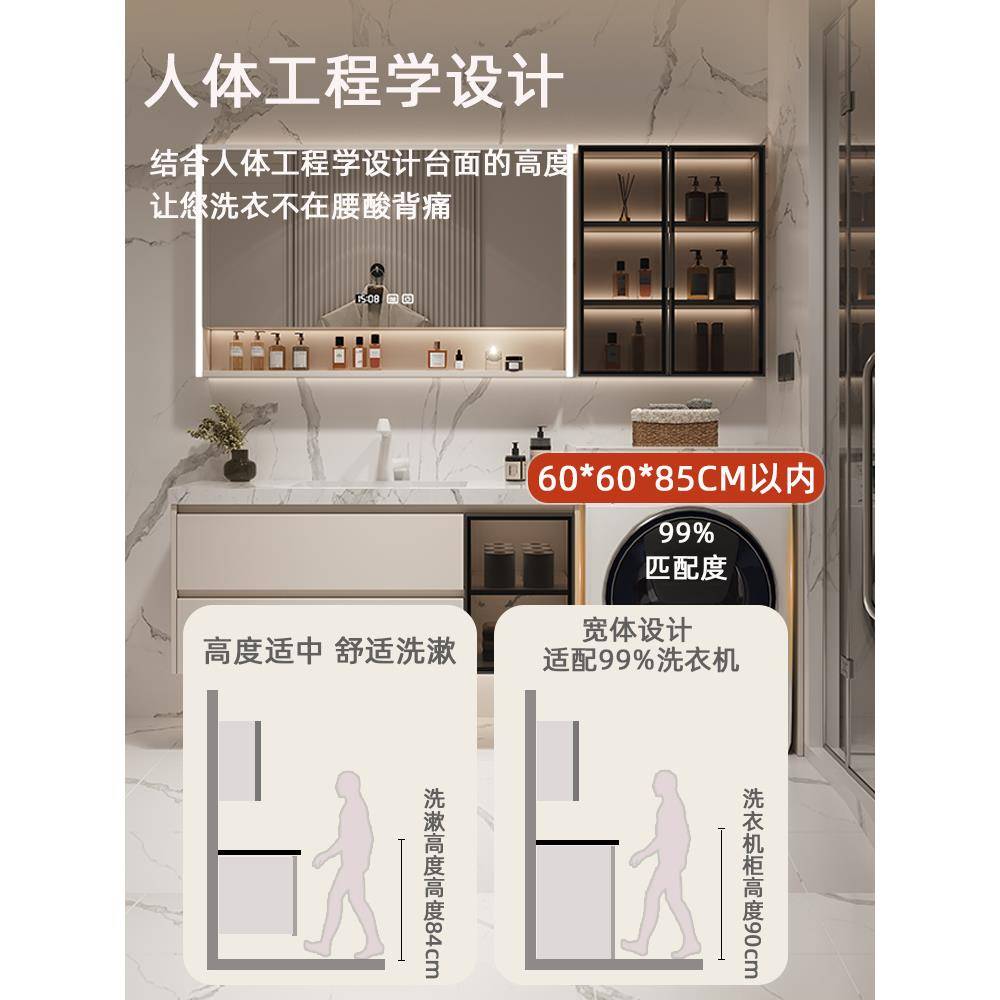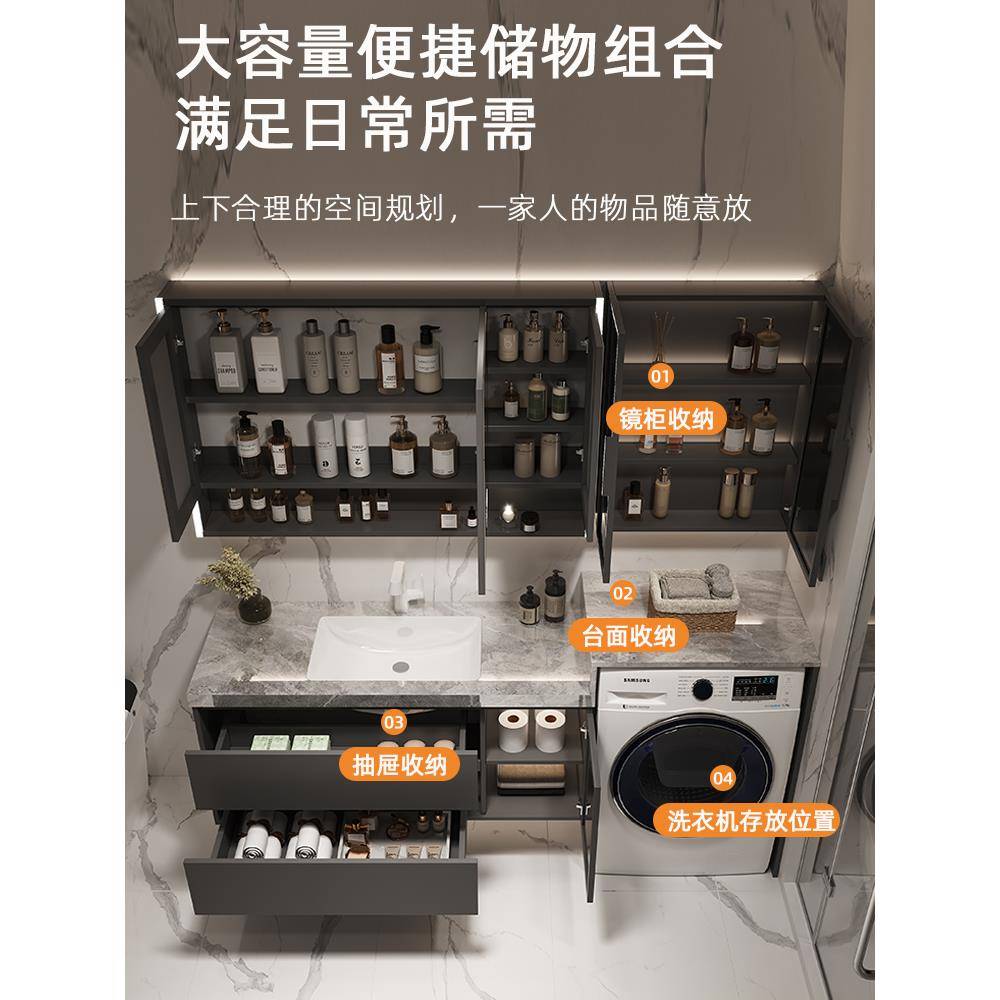 现代简约阳台洗衣机一体柜组合岩板浴室柜卫生间洗漱台洗手洗脸盆