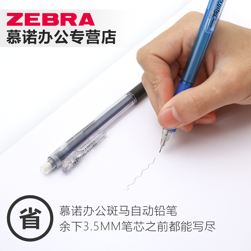 日本ZEBRA斑马自动铅笔mn5彩色杆小学生活动铅笔0.5mm笔芯不易断铅自带橡皮高颜值儿童绘画素描文具