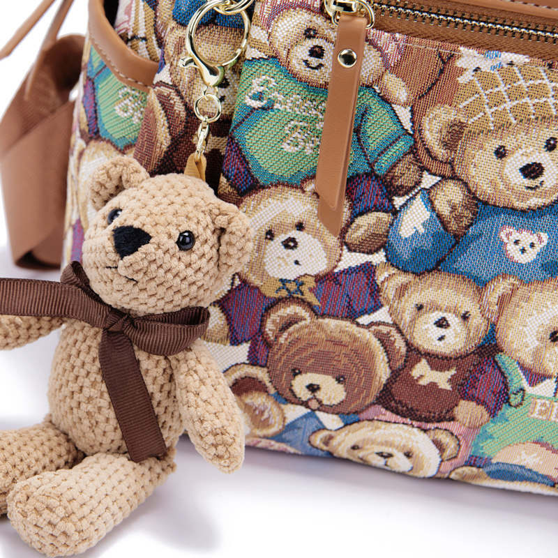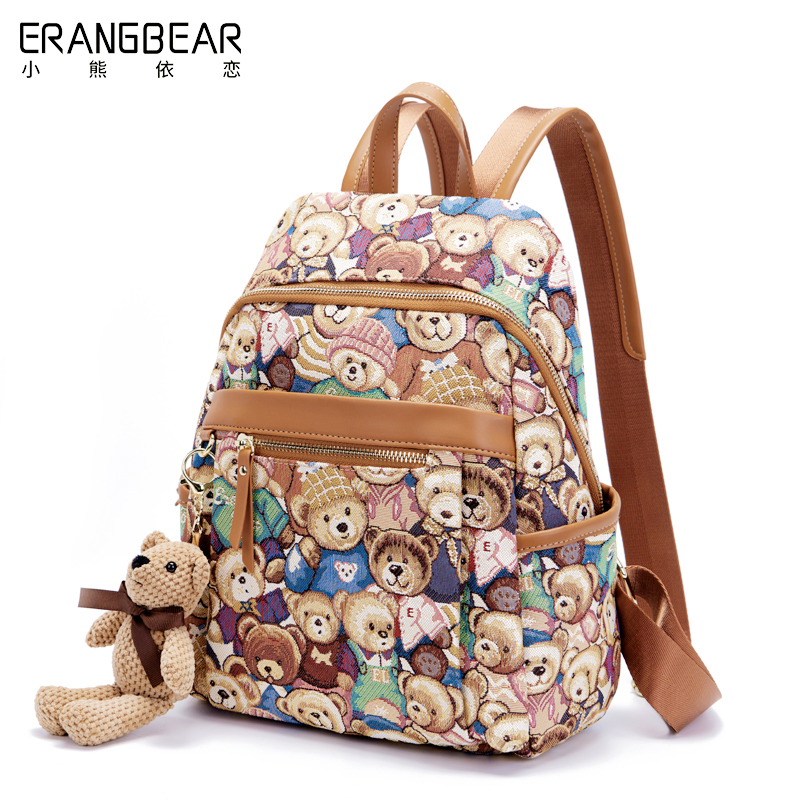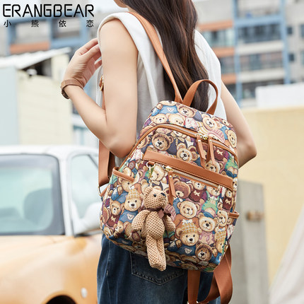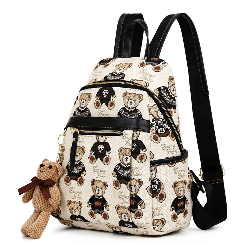 小熊依恋旅行女背包帆布双肩包